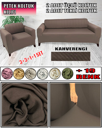Mikro Petek Kumaş Kahverengi 3+3+1+1 Set Komple Giydirme Kanepe & Çekyat, Bohem, vb Model Koltuk Kılıfları
