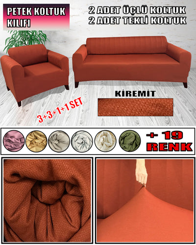 Mikro Petek Kumaş Kiremit 3+3+1+1 Set Komple Giydirme Kanepe & Çekyat, Bohem, vb Model Koltuk Kılıfları