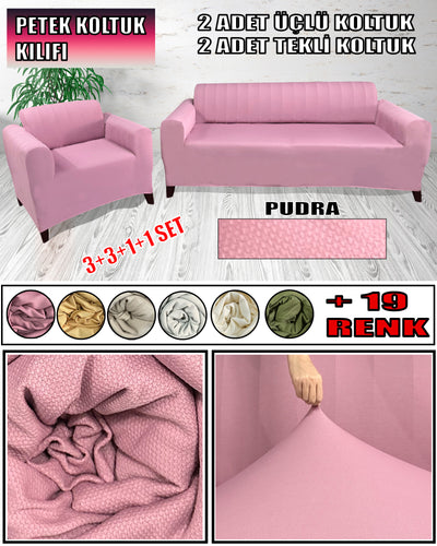 %100 Pamuk Petek Kumaş Pudra 3"Lü Komple Giydirme Kanepe & Çekyat, Bohem, Porto vb Model Koltuk Kılıfları