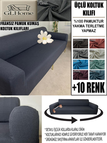 %100 Pamuklu Fransız Kumaş Füme 3 Lü Komple Giydirme Kanepe & Çekyat, Bohem, Porto, Vb. Model Koltuk Kilifi