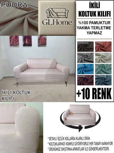 %100 Pamuklu Fransız Kumaş Pudra Çift Kişilik Komple Giydirme 2"Li Kanepe, Bohem, vb Model Koltuk Kılıfları