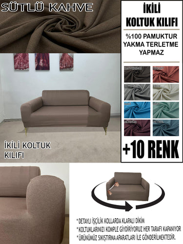 %100 Pamuklu Fransız Kumaş Sütlü Kahve Çift Kişilik Komple Giydirme 2"Li Kanepe, Bohem, vb Model Koltuk Kılıfları