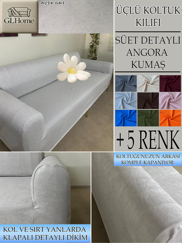 Süet Kumaş Açık Gri 3Lü Komple Giydirme Kanepe & Çekyat, Bohem, Porto, Vb. Model Koltuk Kilifi