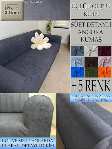 Süet Kumaş Antrasit 3Lü Komple Giydirme Kanepe & Çekyat, Bohem, Porto, Vb. Model Koltuk Kilifi