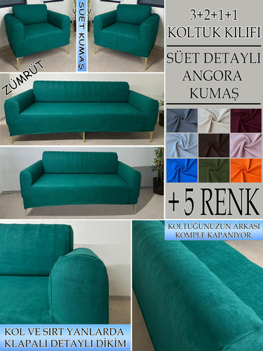 Süet Kumaş Zümrüt 3+2+1+1 Komple Giydirme Kanepe-Çekyat, Bohem, vb. Model Koltuk Kılıfı