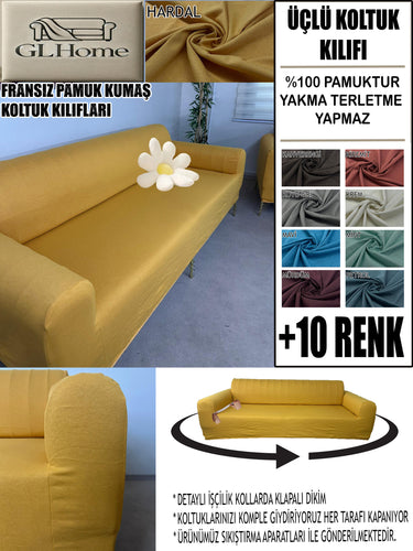 %100 Pamuklu Fransız Kumaş Hardal 3Lü Komple Giydirme Kanepe & Çekyat, Bohem, Porto, Vb. Model Koltuk Kilifi