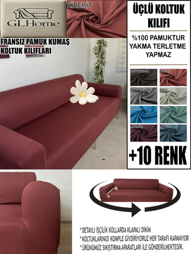 %100 Pamuklu Fransız Kumaş Kiremit 3Lü Komple Giydirme Kanepe & Çekyat, Bohem, Porto, Vb. Model Koltuk Kilifi