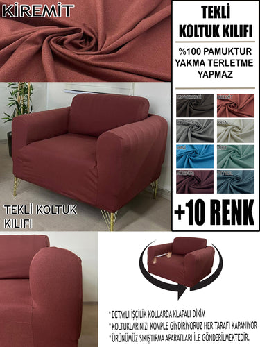 %100 Pamuklu Fransız Kumaş Kiremit Tekli&Berjer Komple Giydirme, Bohem, Porto Model Koltuk Kılıfı