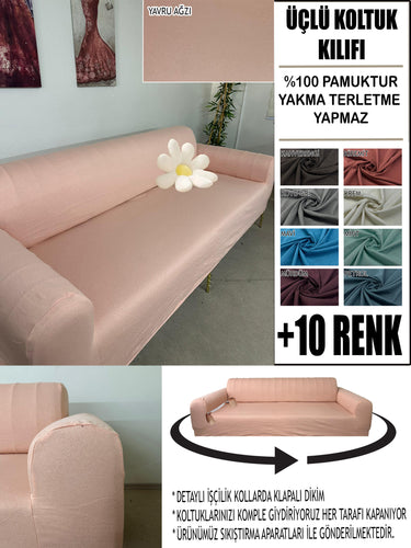 %100 Pamuklu Fransız Kumaş Pudra 3Lü Komple Giydirme Kanepe & Çekyat, Bohem, Porto, Vb. Model Koltuk Kilifi