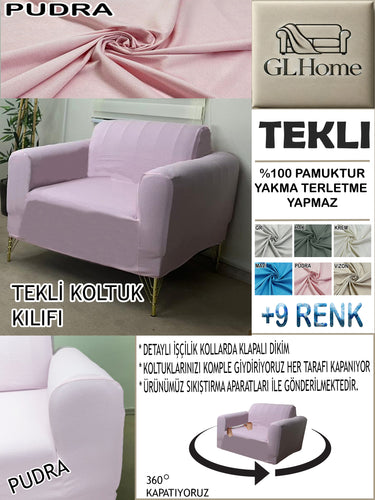 %100 Pamuk Petek Kumaş Pudra Tekli Komple Giydirme Tekli & Berjer, Bohem, Porto vb Model Koltuk Kılıfları