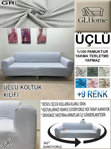 %100 Pamuk Petek Kumaş Gri 3"Lü Komple Giydirme Kanepe & Çekyat, Bohem, Porto vb Model Koltuk Kılıfları