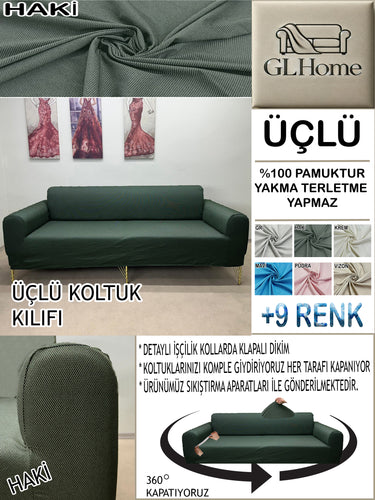 %100 Pamuk Petek Kumaş Haki 3"Lü Komple Giydirme Kanepe & Çekyat, Bohem, Porto vb Model Koltuk Kılıfları