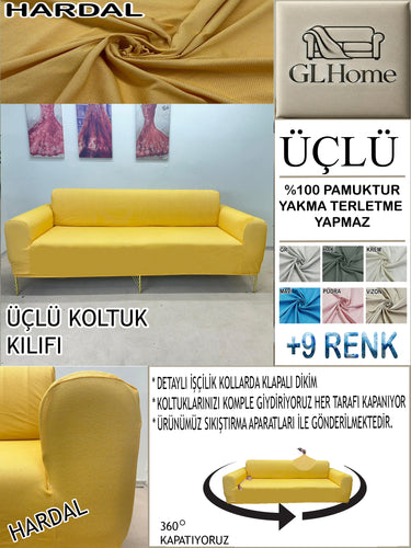 %100 Pamuk Petek Kumaş Hardal 3"Lü Komple Giydirme Kanepe & Çekyat, Bohem, Porto vb Model Koltuk Kılıfları