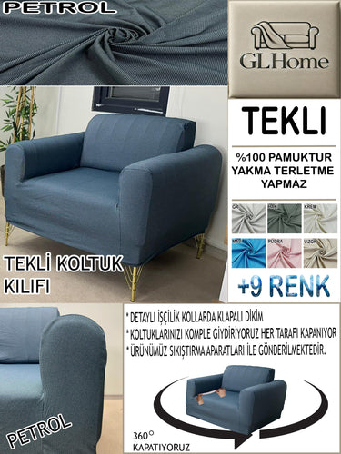 %100 Pamuk Petek Kumaş Petrol Tekli Komple Giydirme Tekli & Berjer, Bohem, Porto vb Model Koltuk Kılıfları