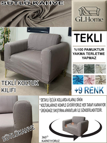 %100 Pamuk Petek Kumaş Sütlü Kahve Tekli Komple Giydirme Tekli & Berjer, Bohem, Porto vb Model Koltuk Kılıfları