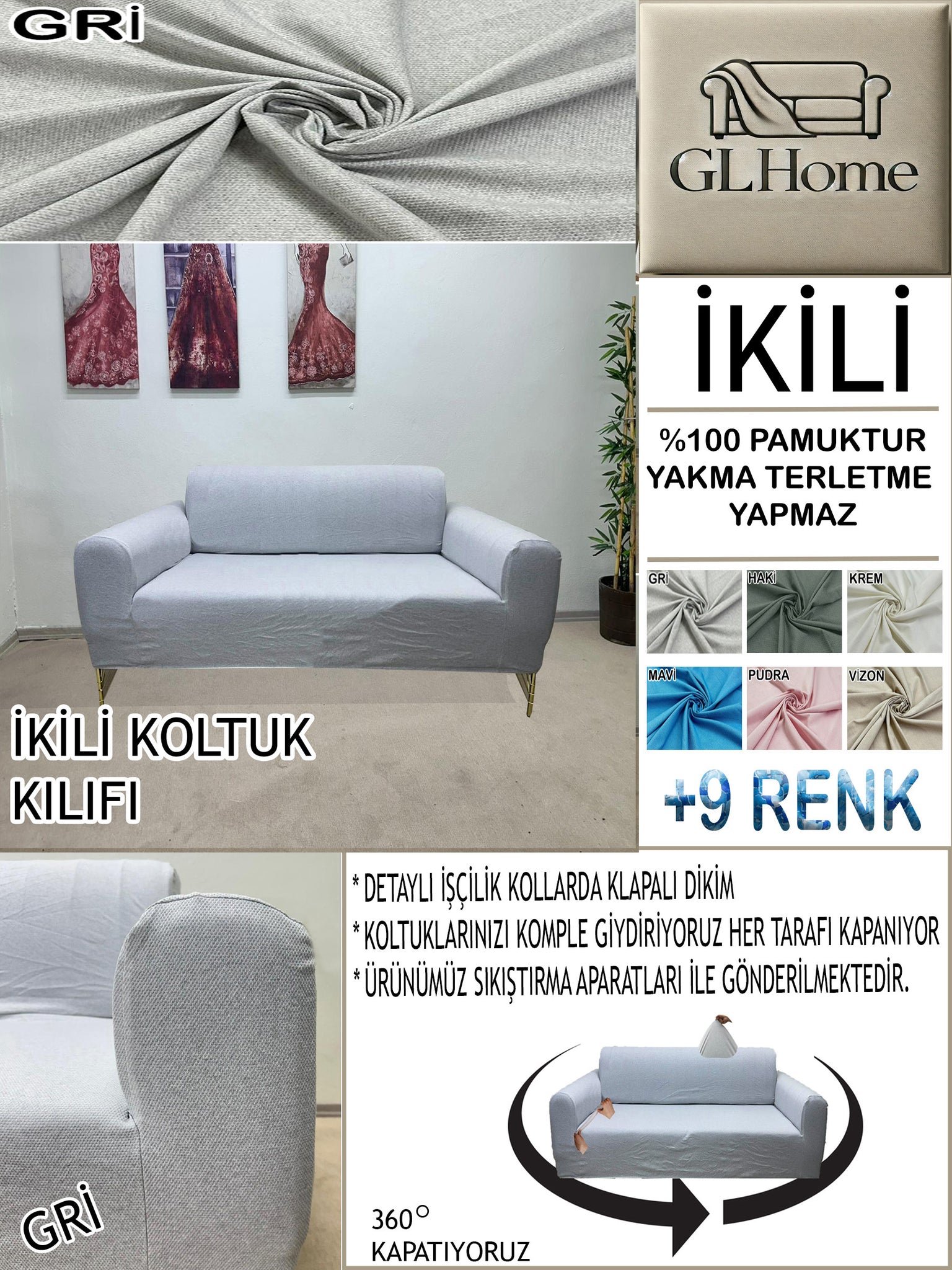 %100 Pamuk Petek Kumaş Gri Çift Kişilik Komple Giydirme 2"Li Kanepe, Bohem, vb Model Koltuk Kılıfları