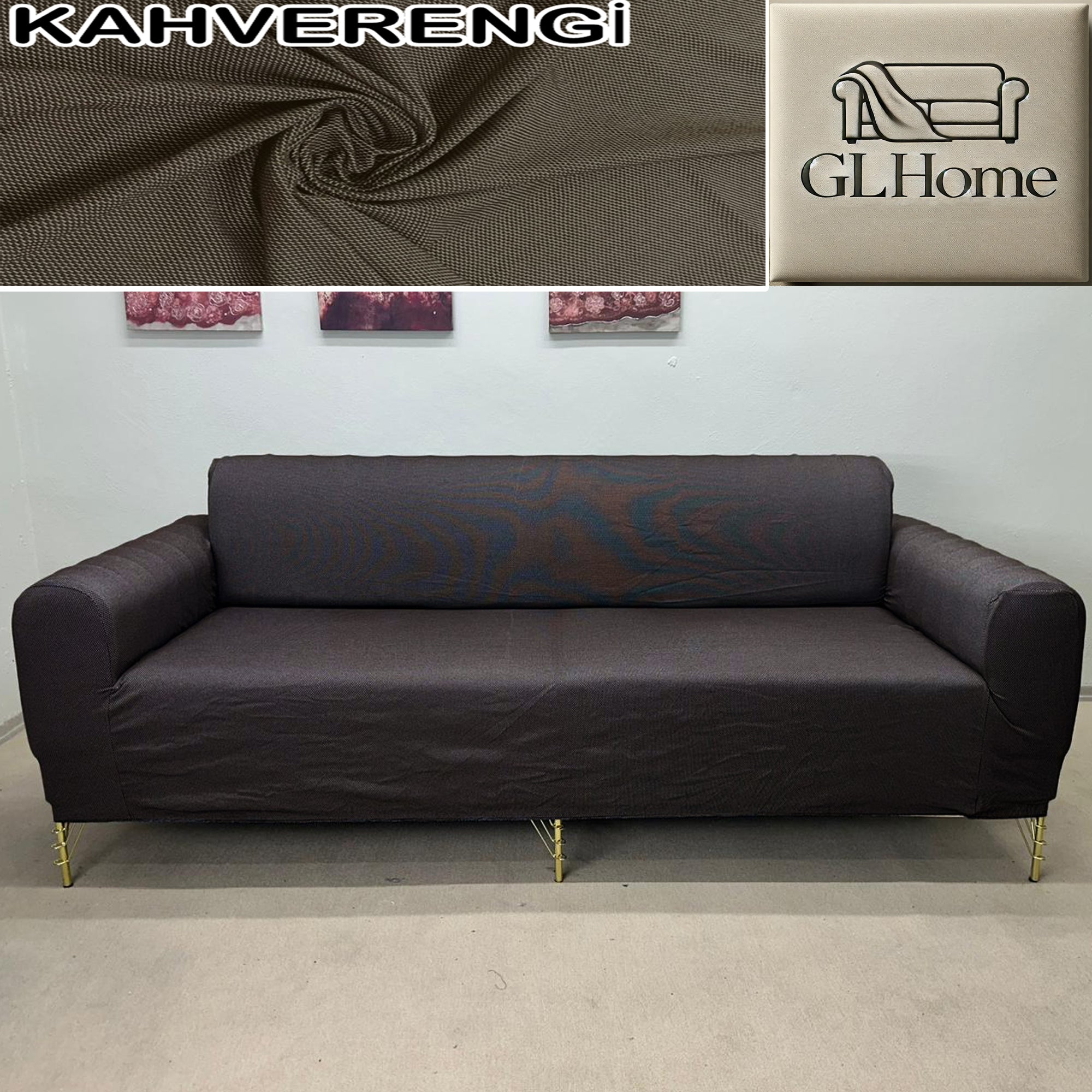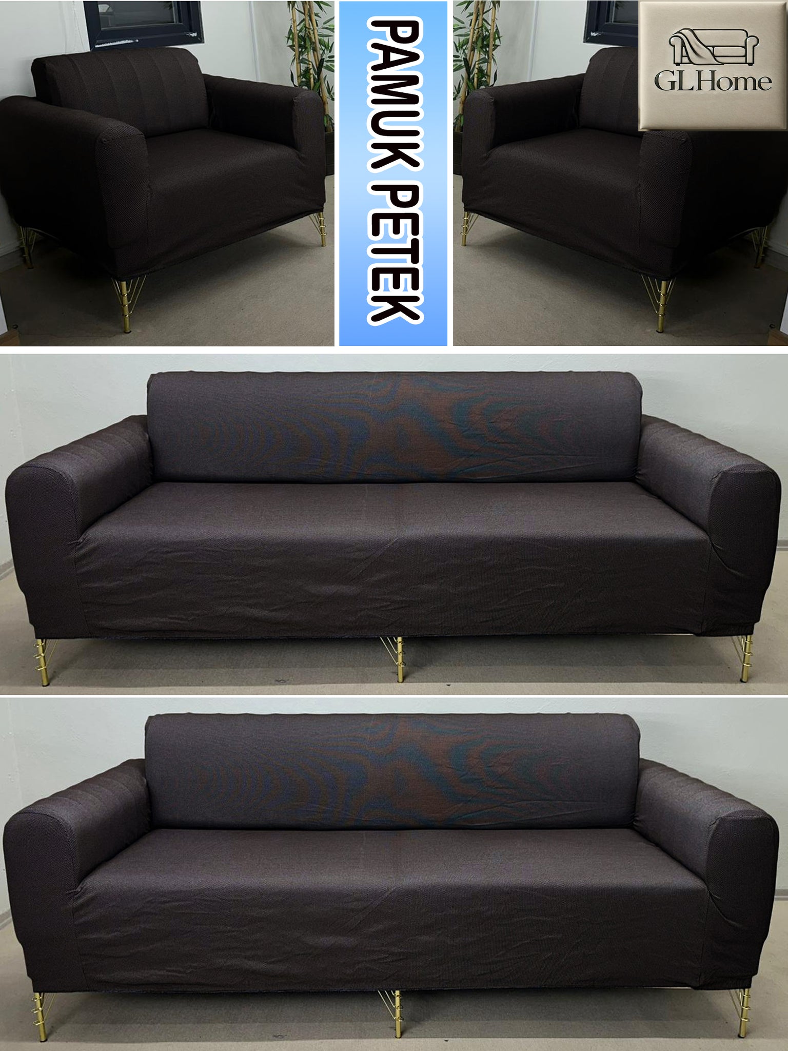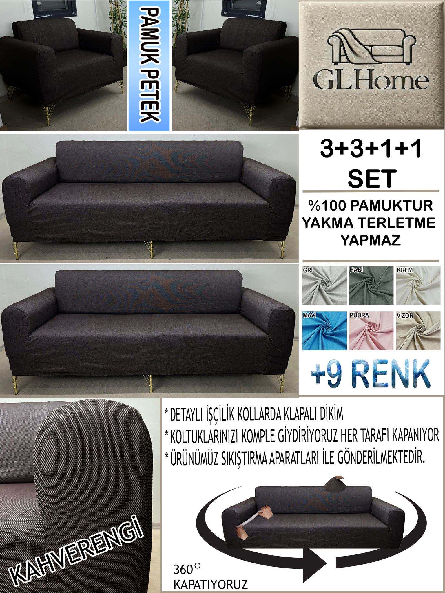 %100 Pamuk Petek Kumaş Kahverengi 3+3+1+1 Set Komple Giydirme Kanepe&Çekyat, Bohem, vb Model Koltuk Kılıfları