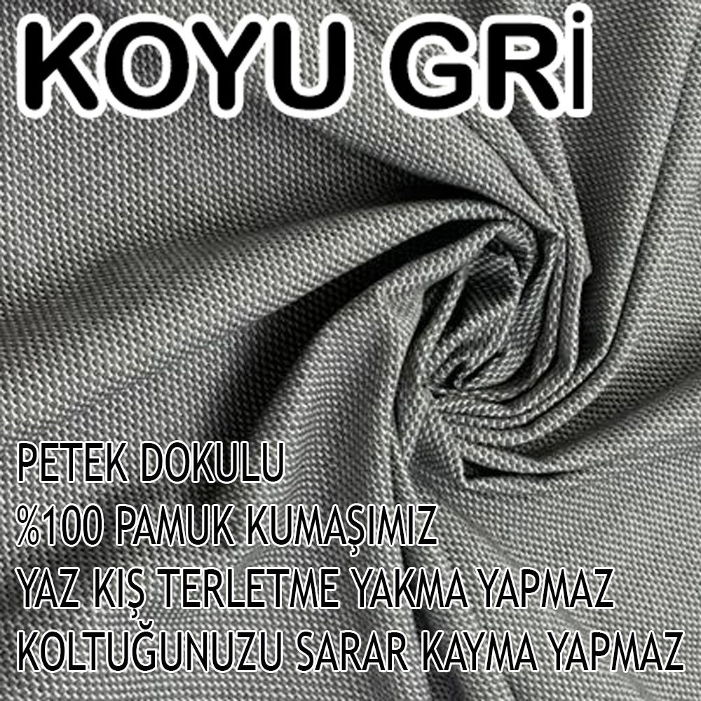 %100 Pamuk Petek Kumaş Koyu Gri Çift Kişilik Komple Giydirme 2"Li Kanepe, Bohem, vb Model Koltuk Kılıfları