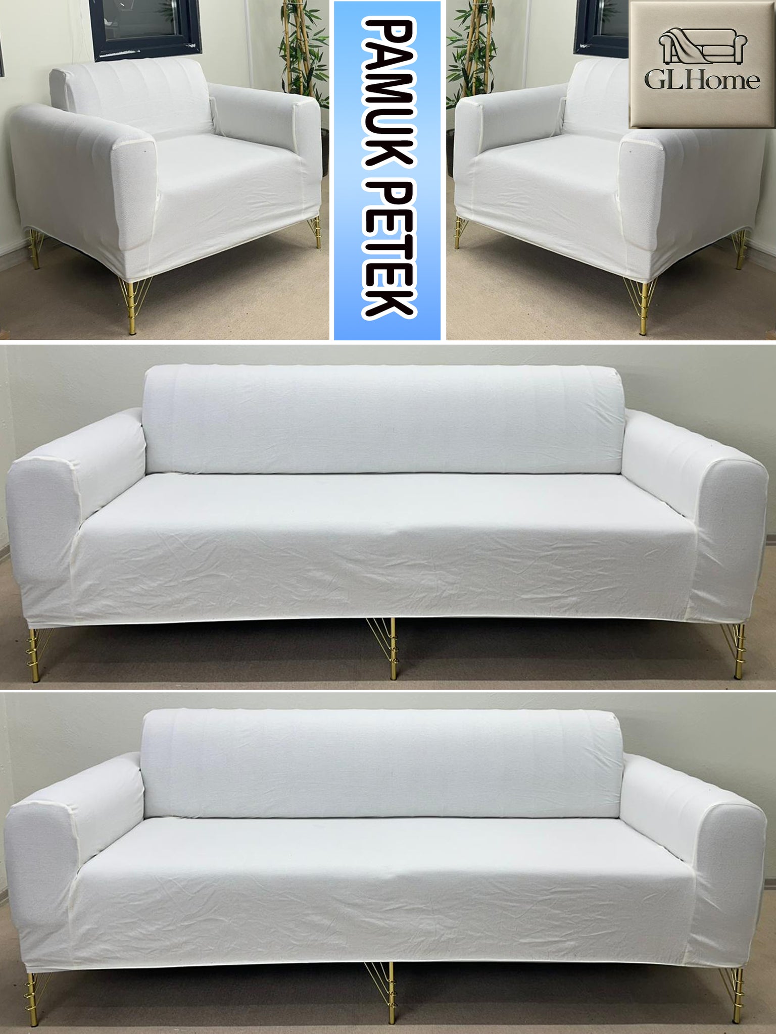 %100 Pamuk Petek Kumaş Krem 3+3+1+1 Set Komple Giydirme Kanepe&Çekyat, Bohem, vb Model Koltuk Kılıfları