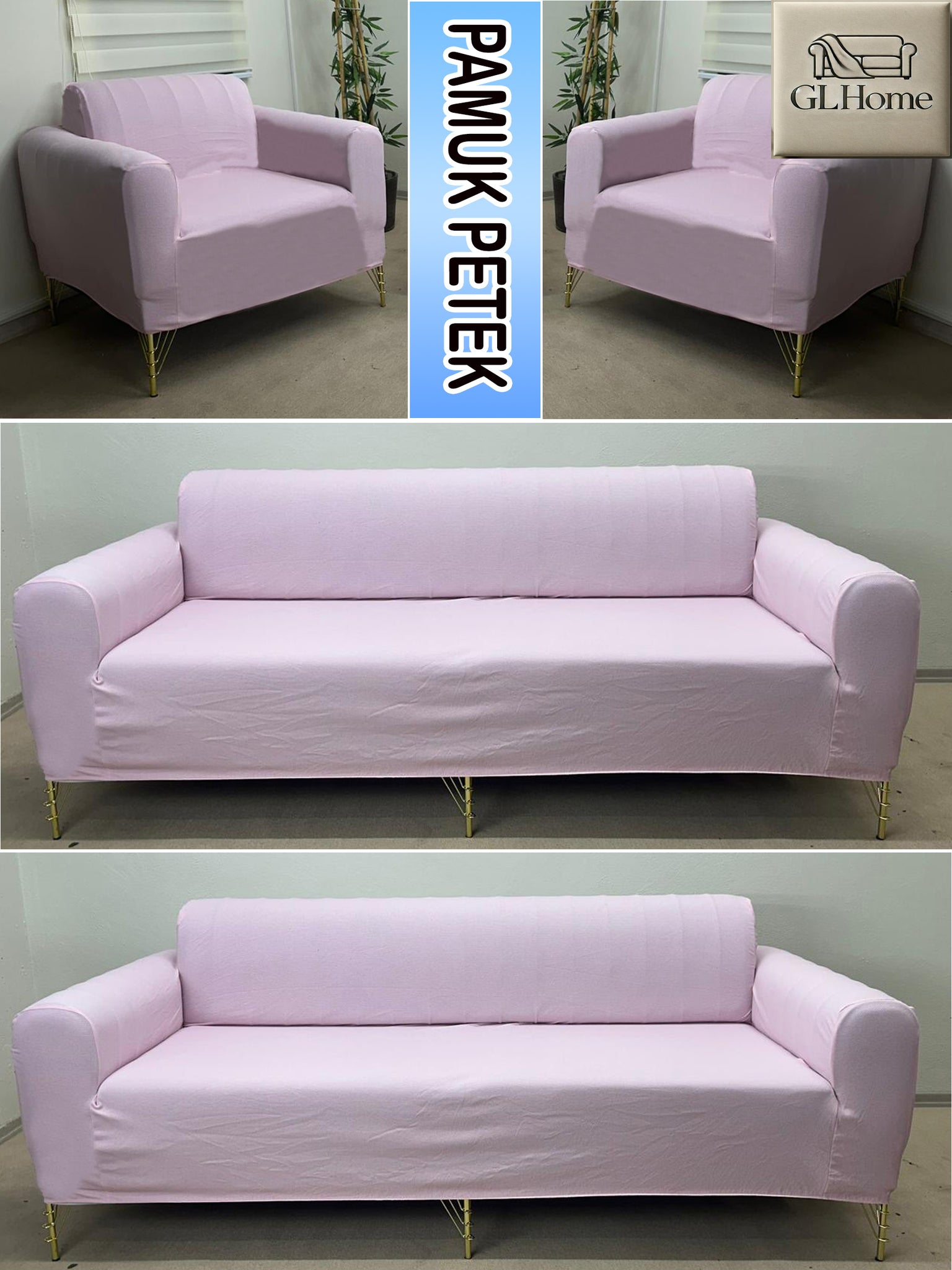 %100 Pamuk Petek Kumaş Pudra 3+3+1+1 Set Komple Giydirme Kanepe&Çekyat, Bohem, vb Model Koltuk Kılıfları