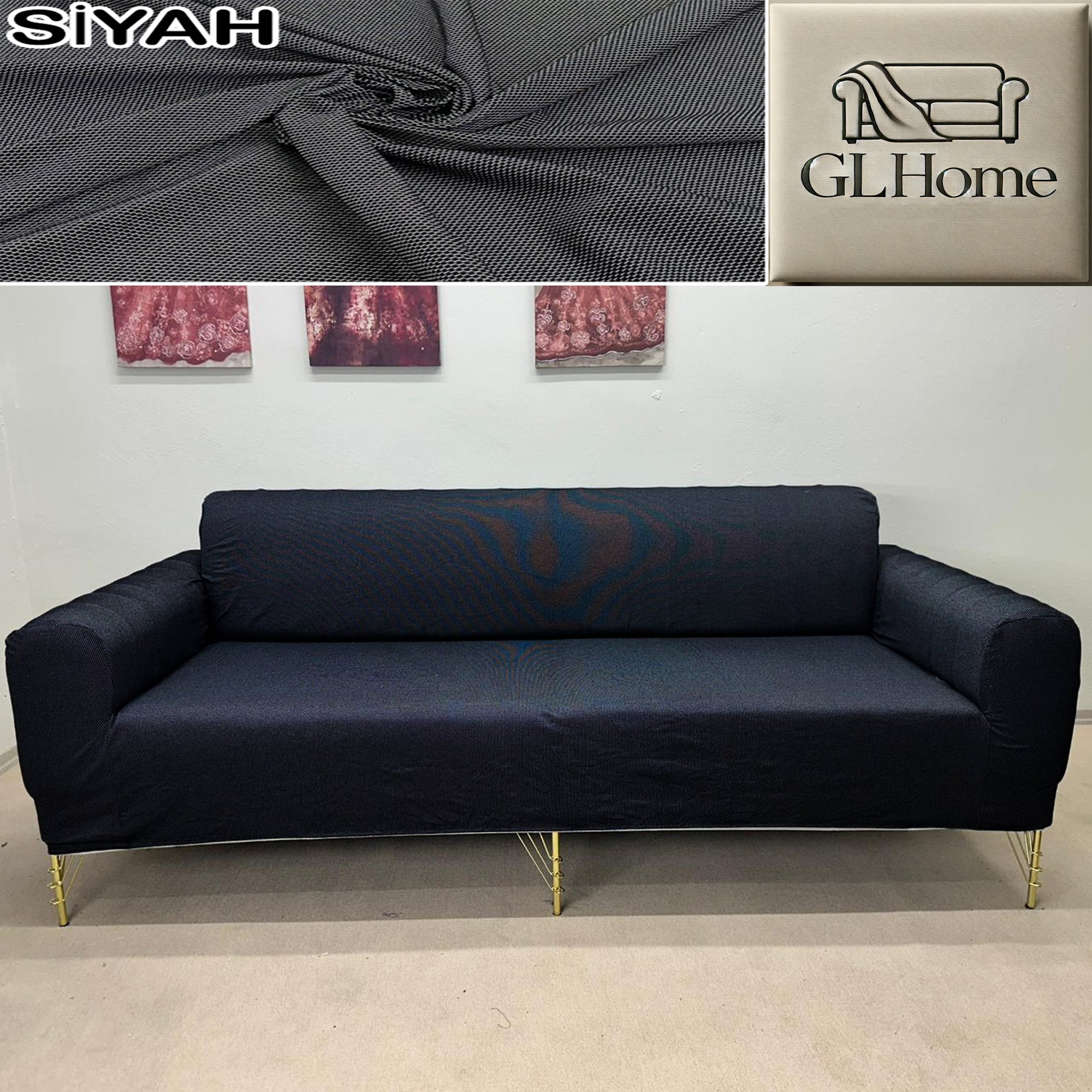 %100 Pamuk Petek Kumaş Siyah 3"Lü Komple Giydirme Kanepe & Çekyat, Bohem, Porto vb Model Koltuk Kılıfları