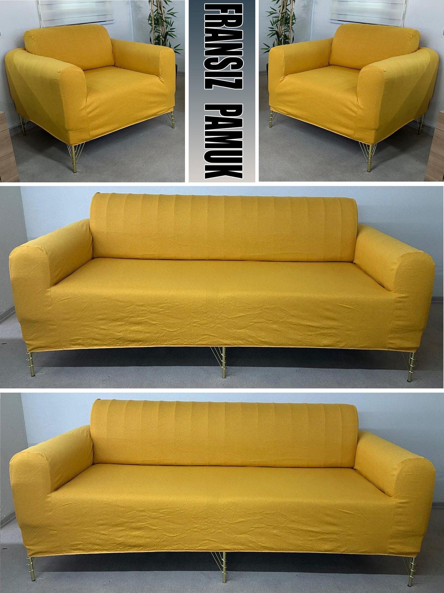 %100 Pamuklu Fransız  Kumaş Hardal 3+3+1+1 Komple Giydirme Kanepe&Çekyat, Bohem, Porto, vn. Model Koltuk Kılıfı