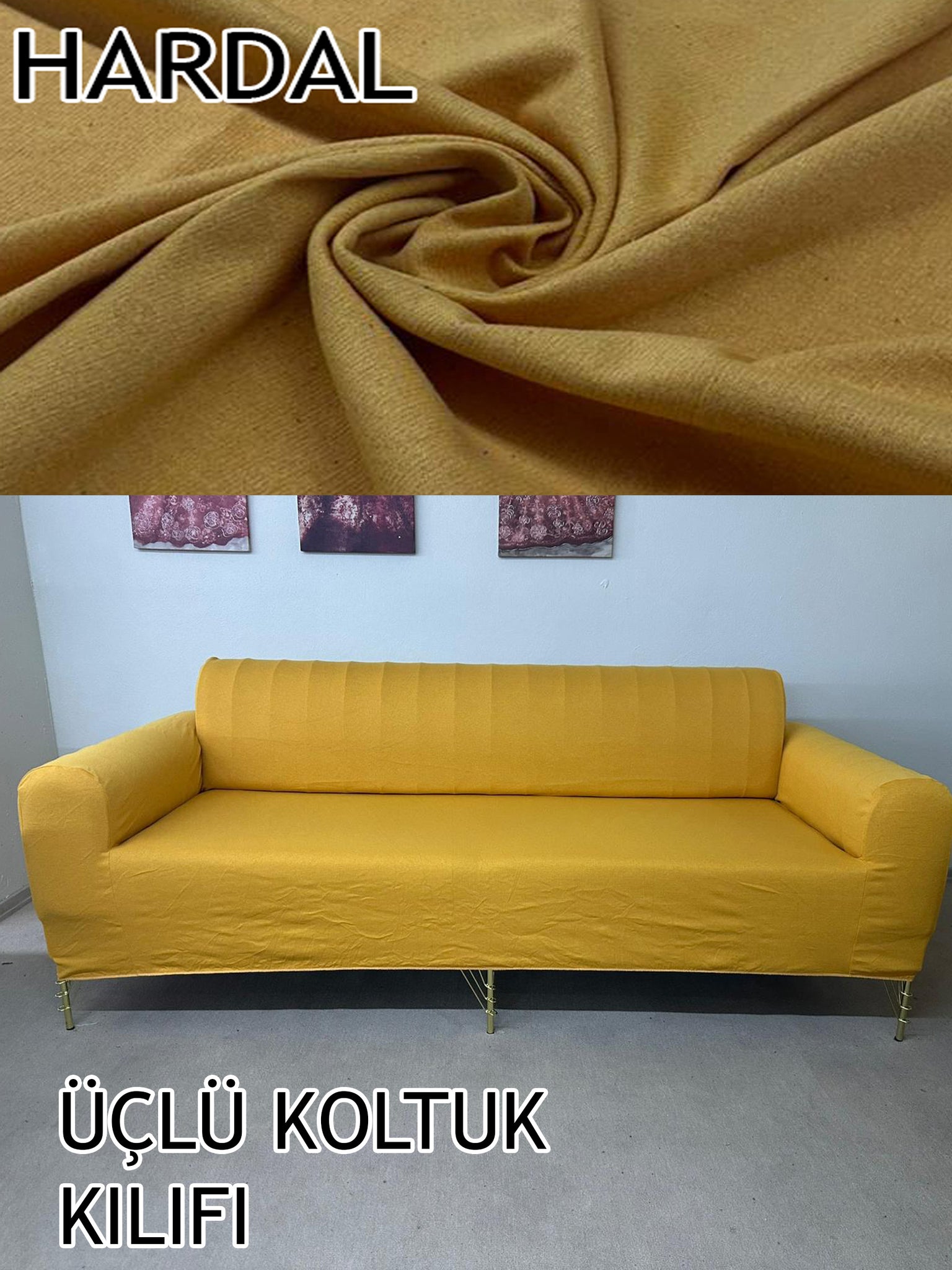 %100 Pamuklu Fransız Kumaş Hardal 3Lü Komple Giydirme Kanepe & Çekyat, Bohem, Porto, Vb. Model Koltuk Kilifi