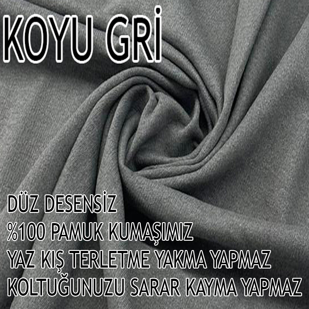 %100 Pamuklu Fransız Kumaş Koyu Gri Tekli&Berjer Komple Giydirme, Bohem, Porto Model Koltuk Kılıfı