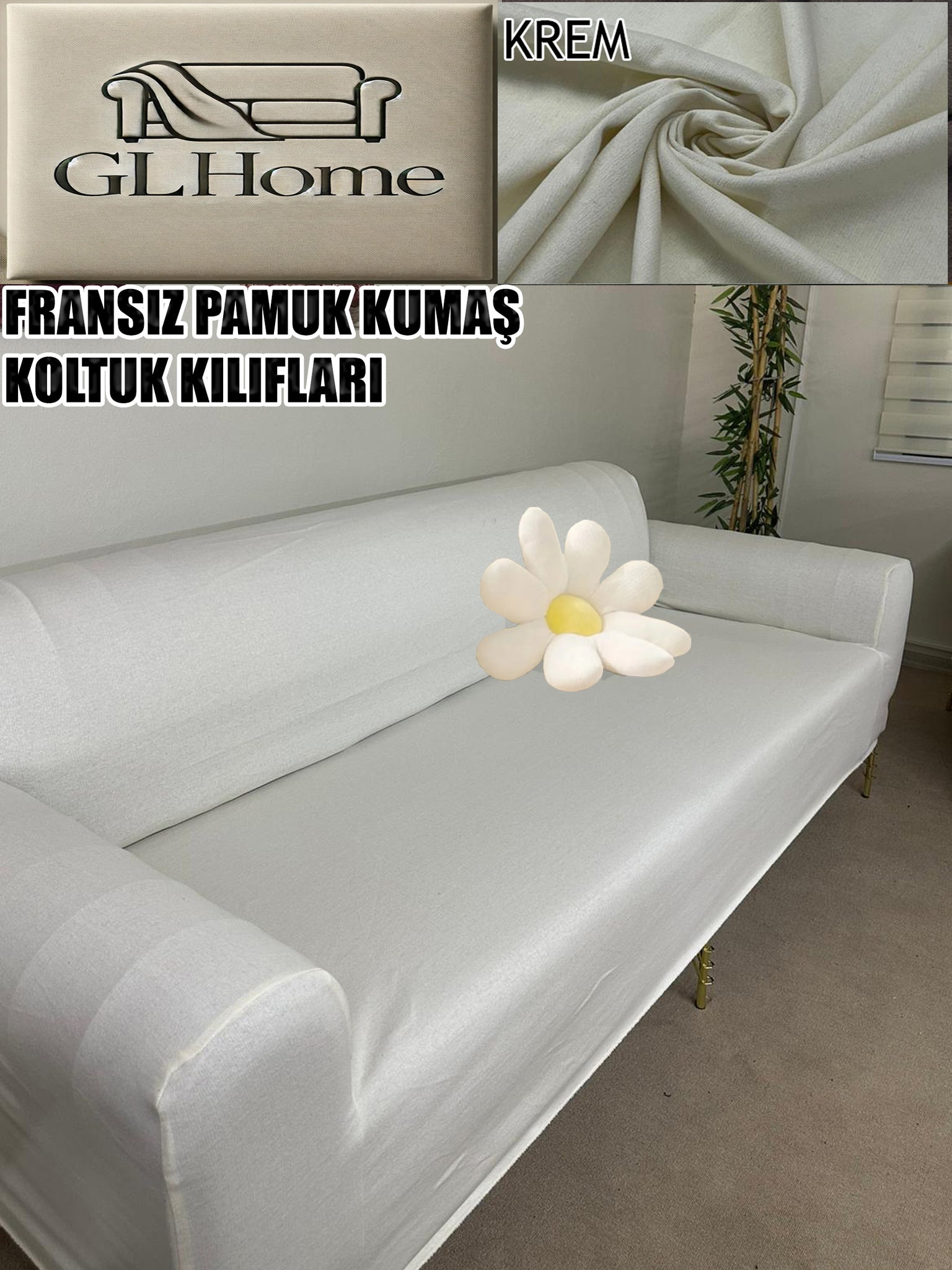 %100 Pamuklu Fransız Kumaş Krem 3Lü Komple Giydirme Kanepe & Çekyat, Bohem, Porto, Vb. Model Koltuk Kilifi