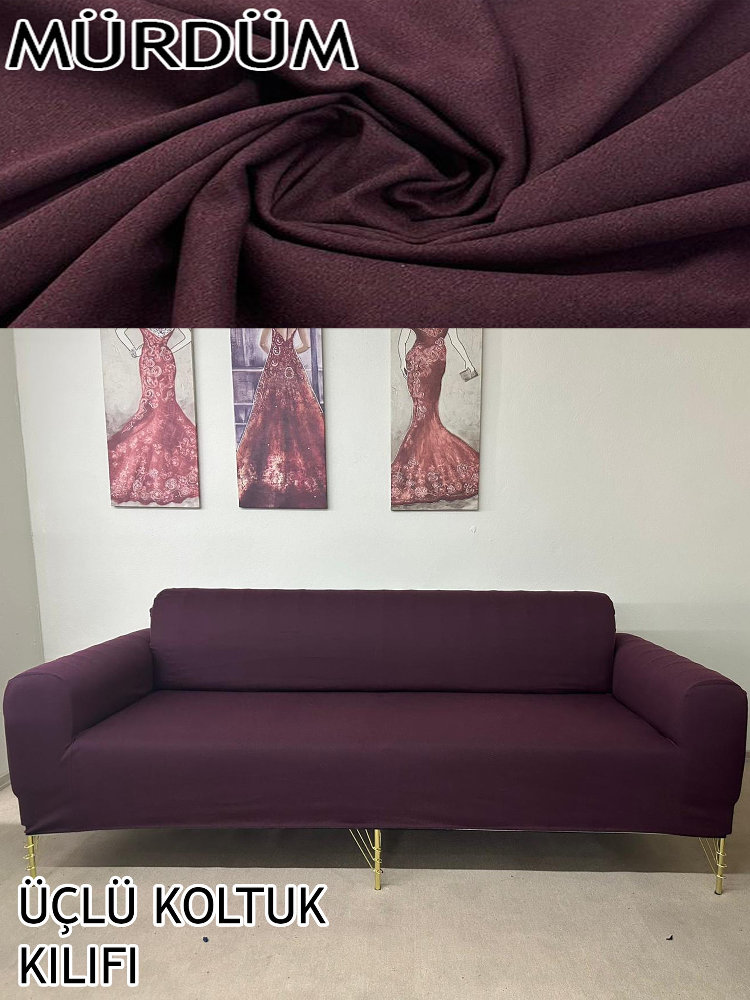 %100 Pamuklu Fransız Kumaş Mürdüm 3+3+1+1 Komple Giydirme Kanepe&Çekyat, Bohem, Porto, vn. Model Koltuk Kılıfı