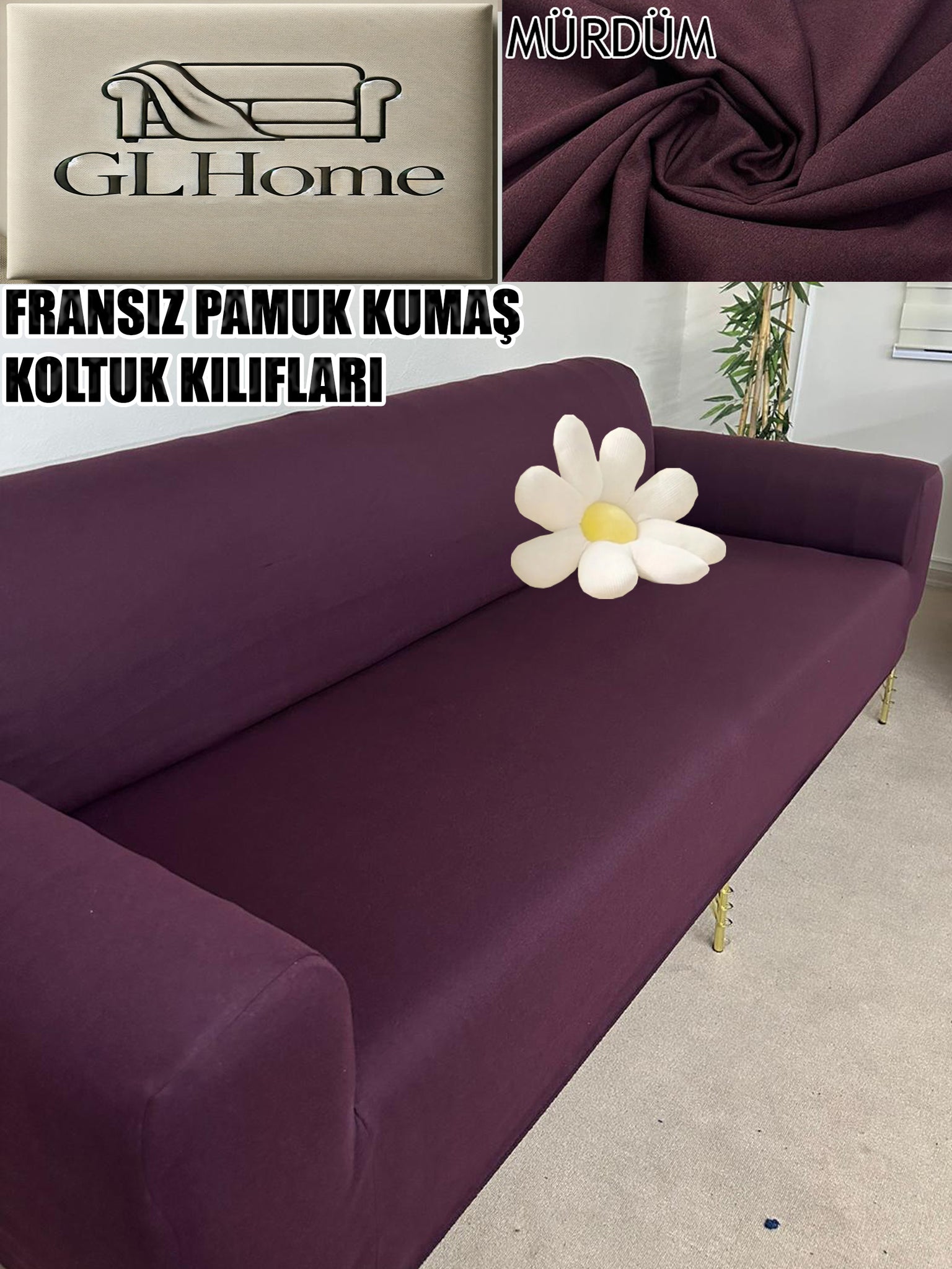 %100 Pamuklu Fransız Kumaş Mürdüm 3Lü Komple Giydirme Kanepe & Çekyat, Bohem, Porto, Vb. Model Koltuk Kilifi