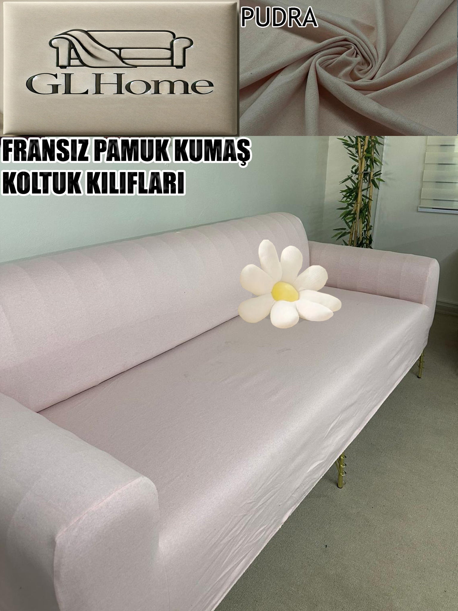 %100 Pamuklu Fransız Kumaş Pudra 3Lü Komple Giydirme Kanepe & Çekyat, Bohem, Porto, Vb. Model Koltuk Kilifi