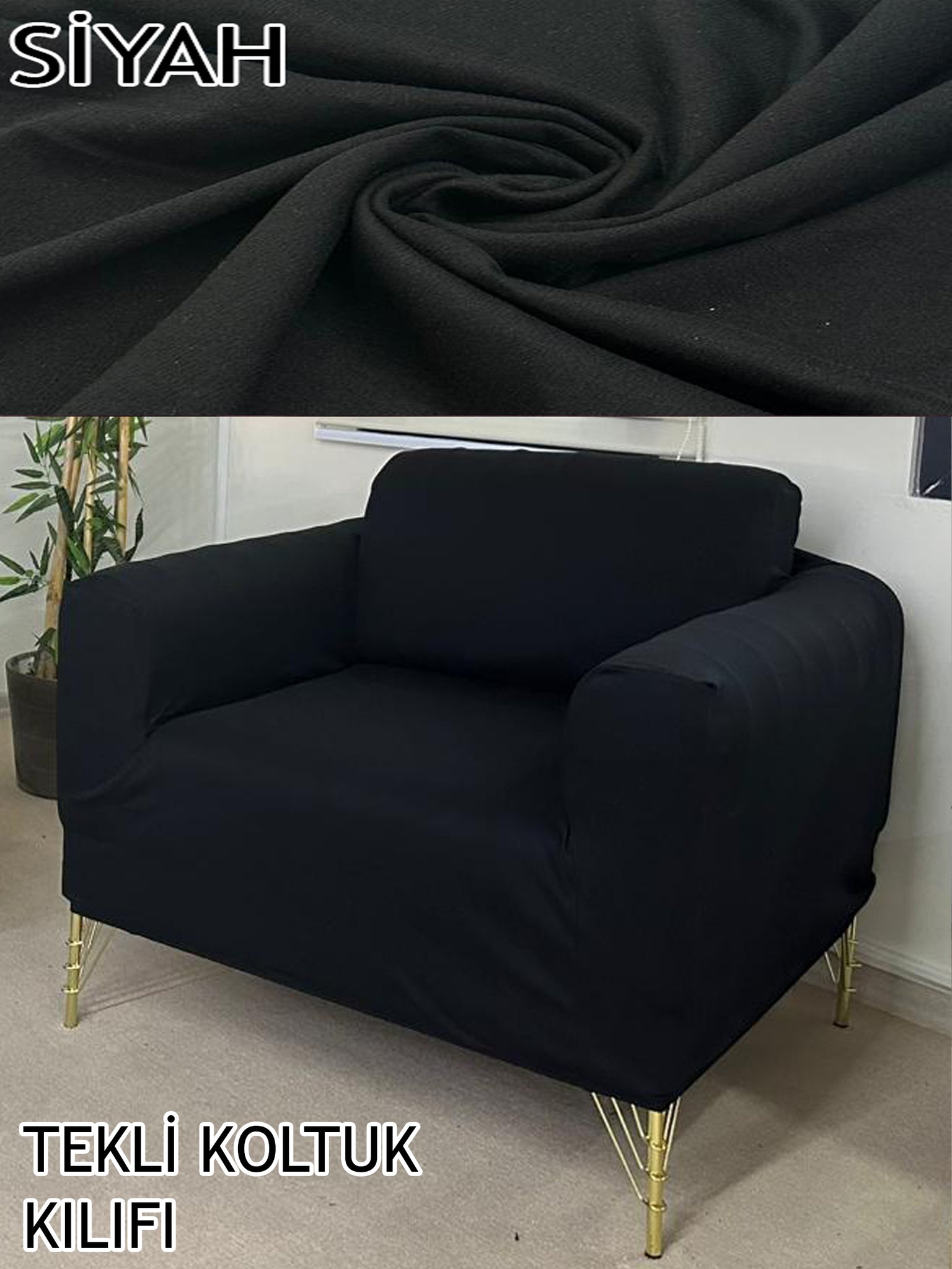 %100 Pamuklu Fransız  Kumaş Siyah Tekli&Berjer Komple Giydirme, Bohem, Porto Model Koltuk Kılıfı