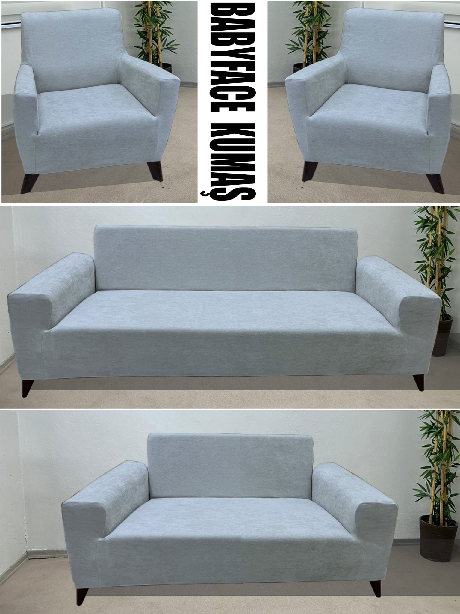 Baby Face  Kumaş Açık Gri 3+2+1+1 Set Komple Giydirme Kanepe&Çekyat, Bohem, vb Model Koltuk Kılıfları