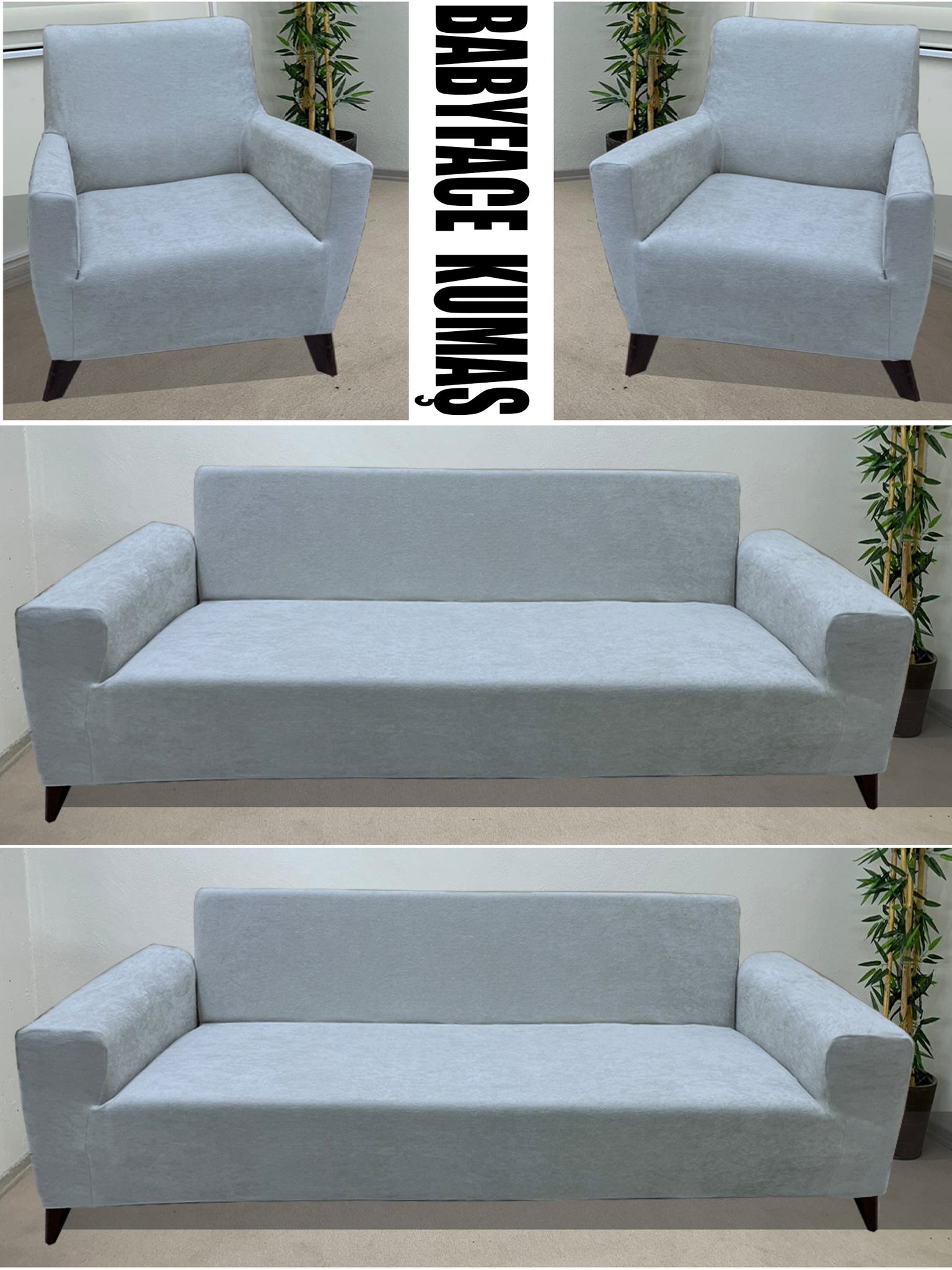 Baby Face Kumaş Açık Gri 3+3+1+1 Set Komple Giydirme Kanepe & Çekyat, Bohem, vb Model Koltuk Kılıfları