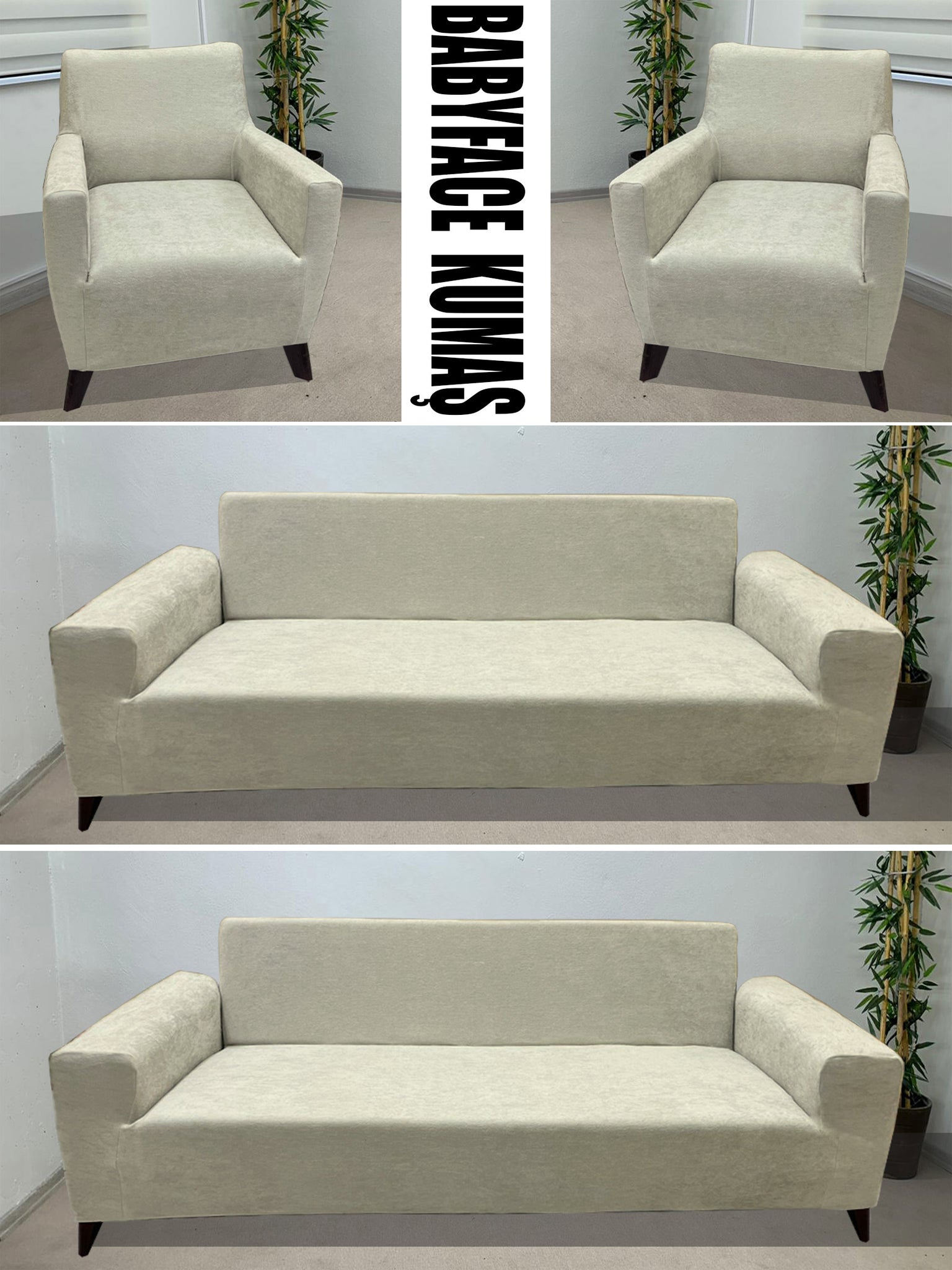 Baby Face  Kumaş Bej 3+3+1+1 Set Komple Giydirme Kanepe & Çekyat, Bohem, vb Model Koltuk Kılıfları