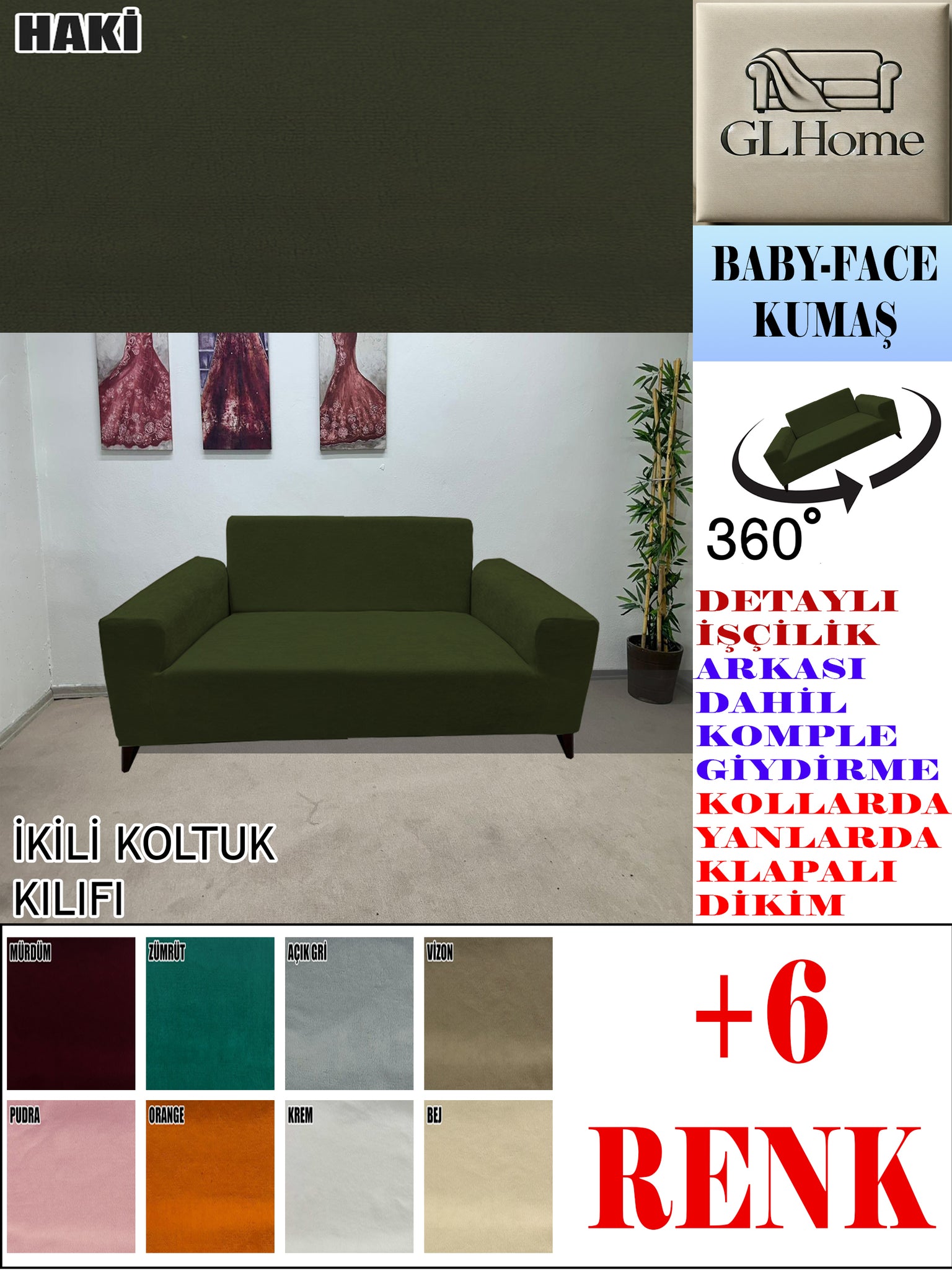 Baby Face  Kumaş Haki Çift Kişilik Komple Giydirme Kanepe, Bohem, vb Model Koltuk Kılıfları