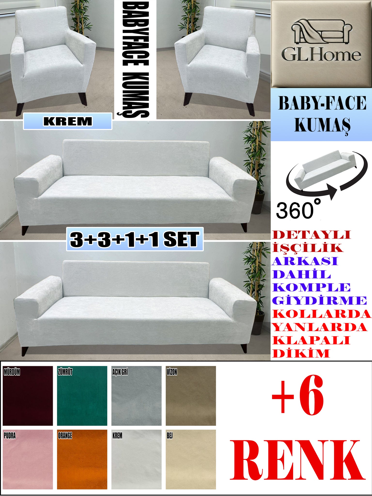 Baby Face  Kumaş Krem 3+3+1+1 Set Komple Giydirme Kanepe & Çekyat, Bohem, vb Model Koltuk Kılıfları