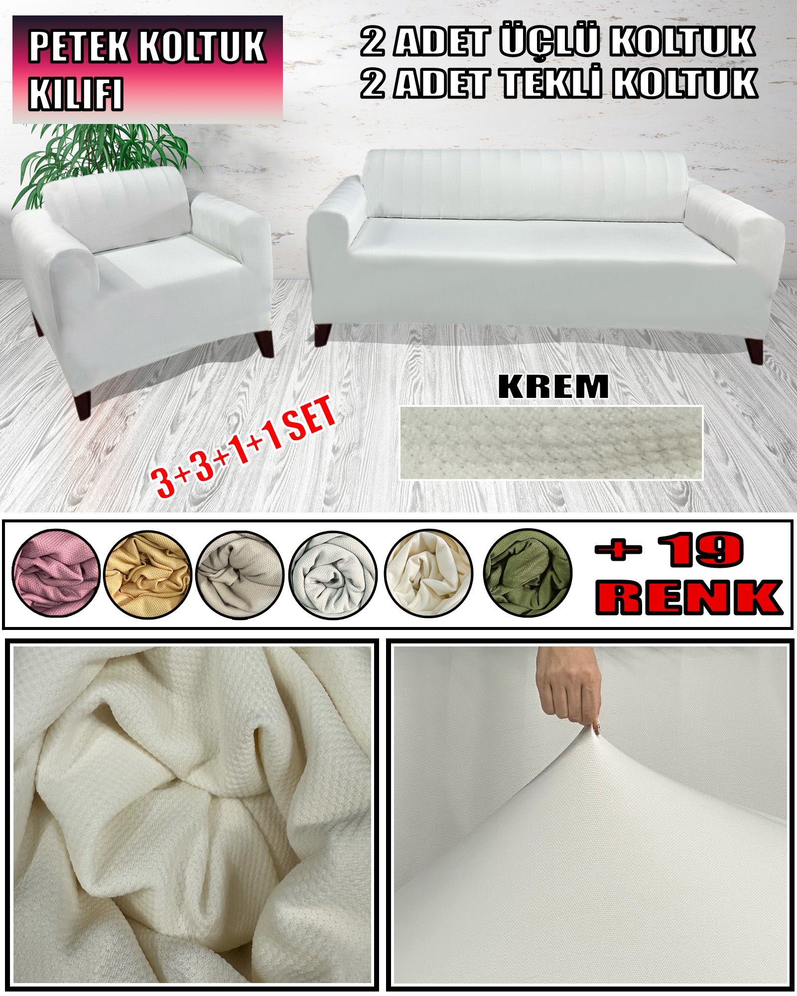 Mikro Petek Kumaş Krem 3+3+1+1 Set  Komple Giydirme Kanepe & Çekyat, Bohem, vb Model Koltuk Kılıfları