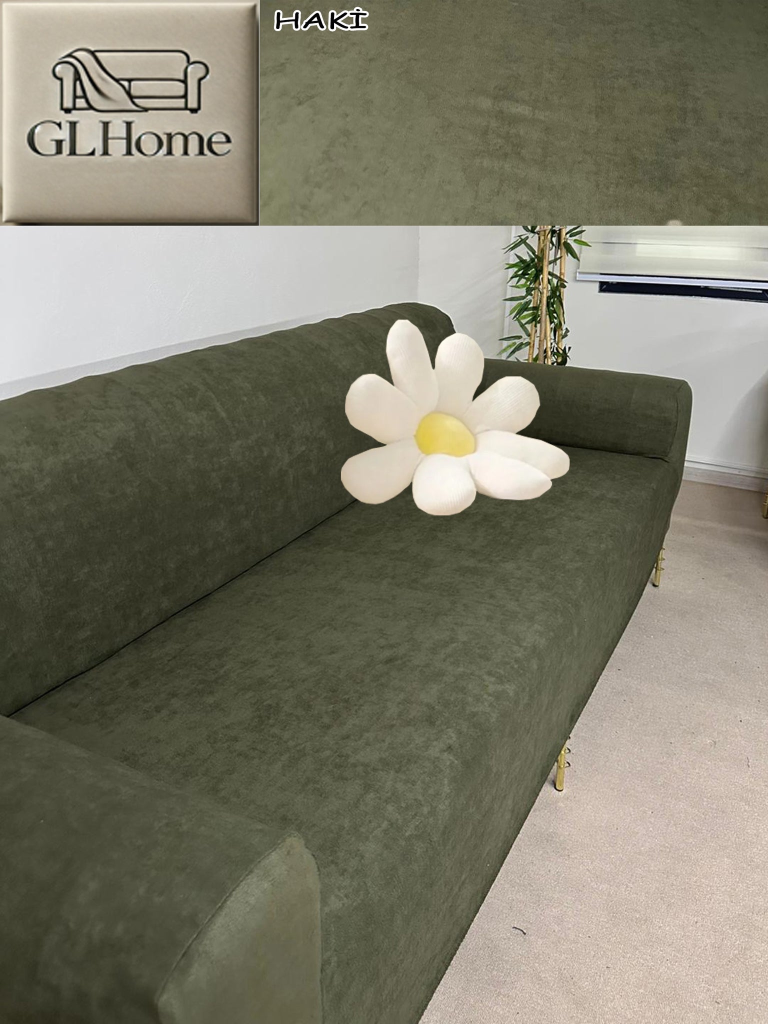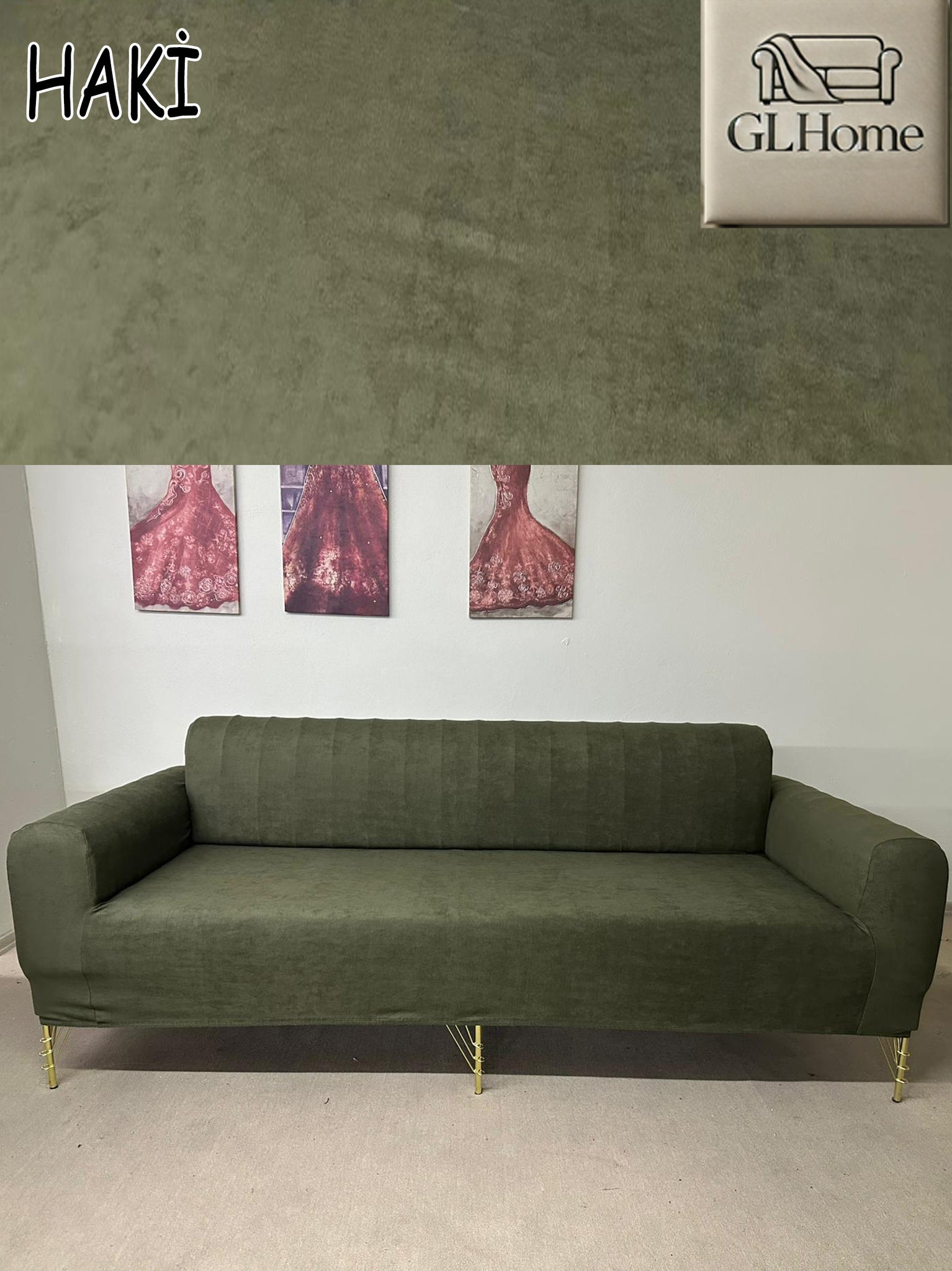 Süet Kumaş Haki 3Lü Komple Giydirme Kanepe & Çekyat, Bohem, Porto, Vb. Model Koltuk Kilifi