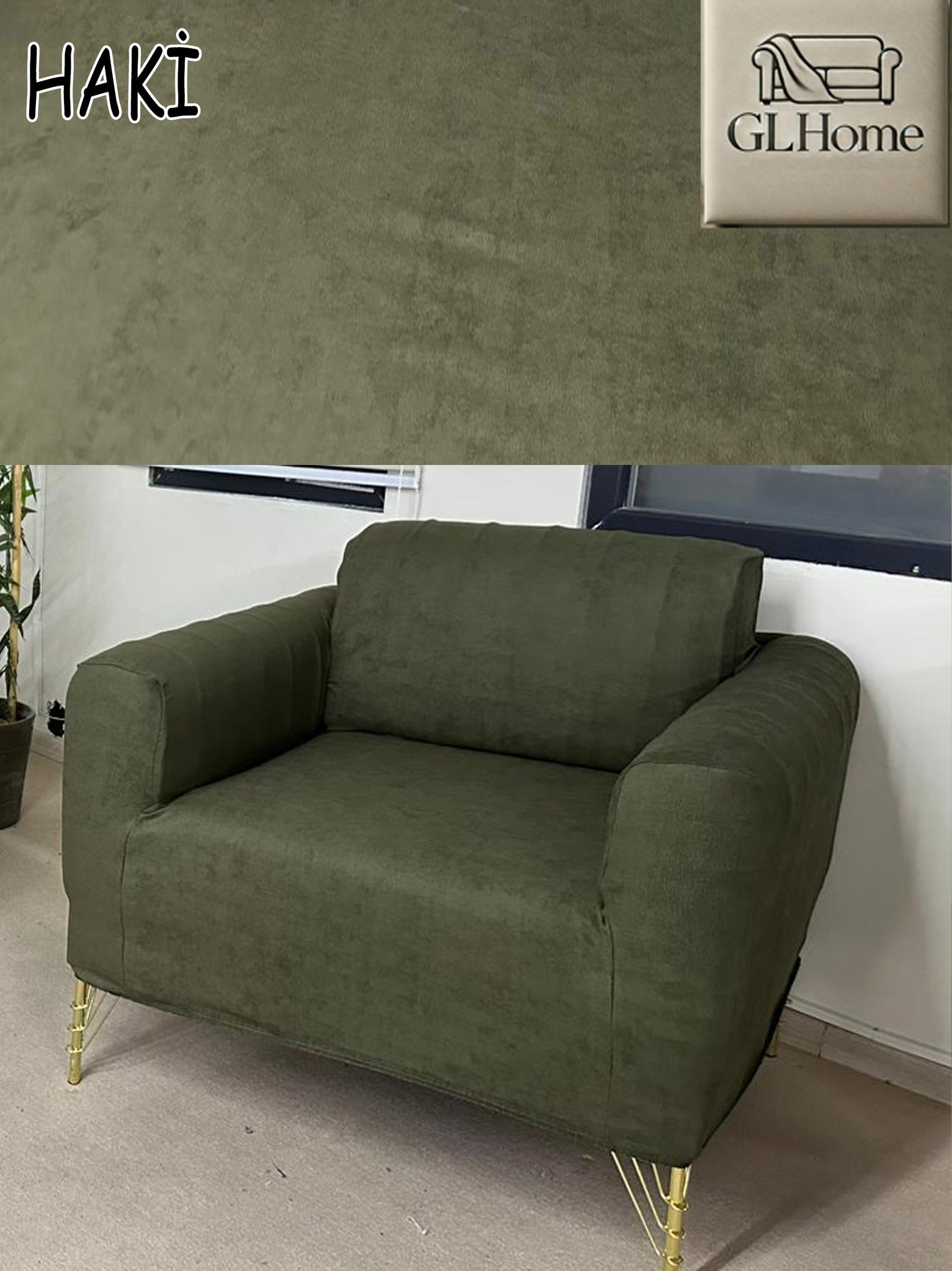 Süet Kumaş Haki Tekli&Berjer Komple Giydirme, Bohem, Porto Model Koltuk Kılıfı