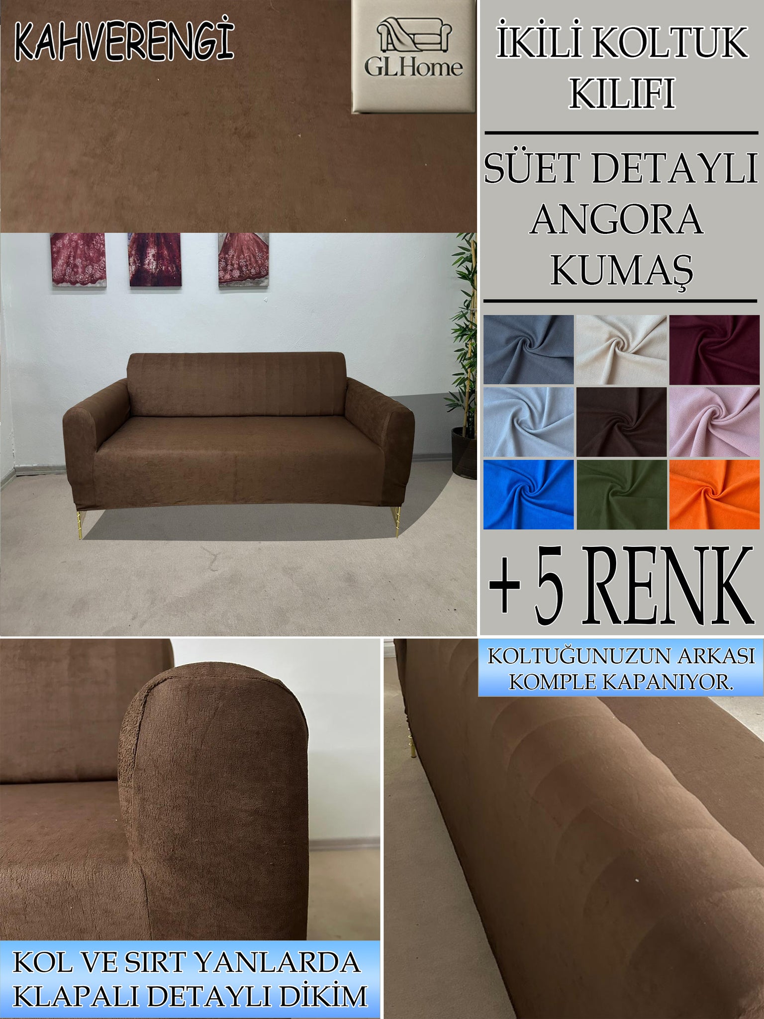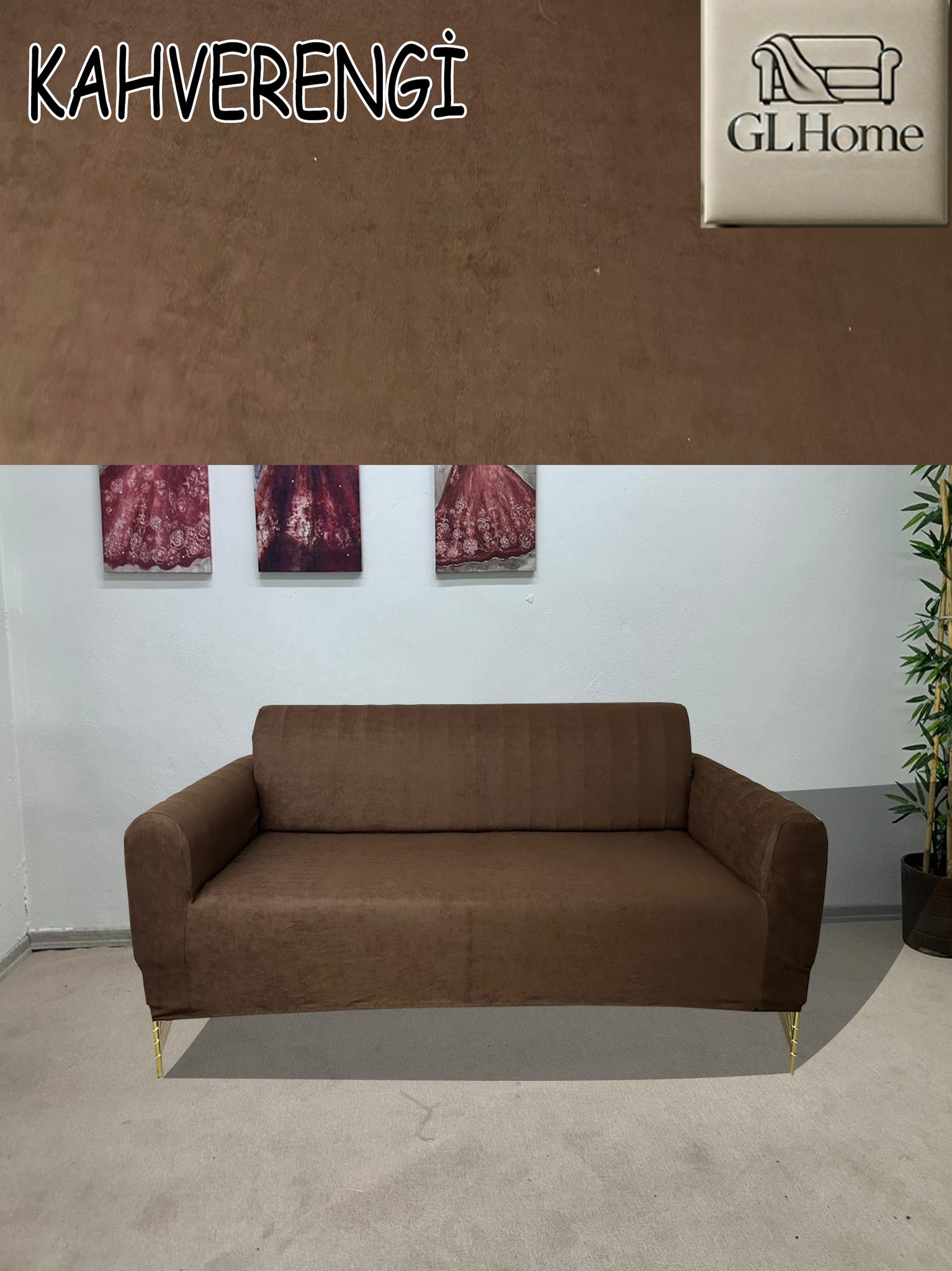 Süet Kumaş Kahverengi Çift Kişilik Komple Giydirme 2"Li kanepe Bohem Tarzı koltuk Kılıfı