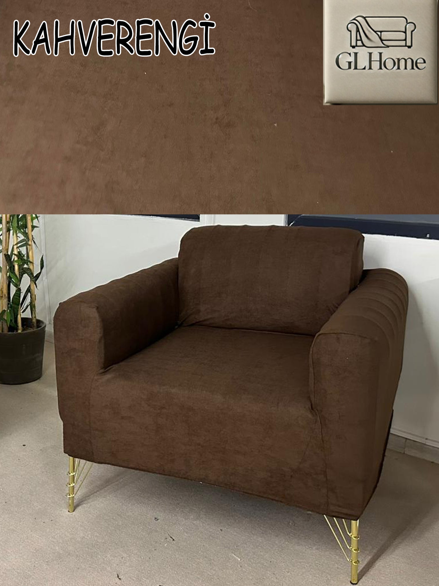 • Görseli Galeri görüntüleyiciye yükleyin, Süet Kumaş Kahverengi Tekli&Berjer Komple Giydirme, Bohem, Porto Model Koltuk Kılıfı