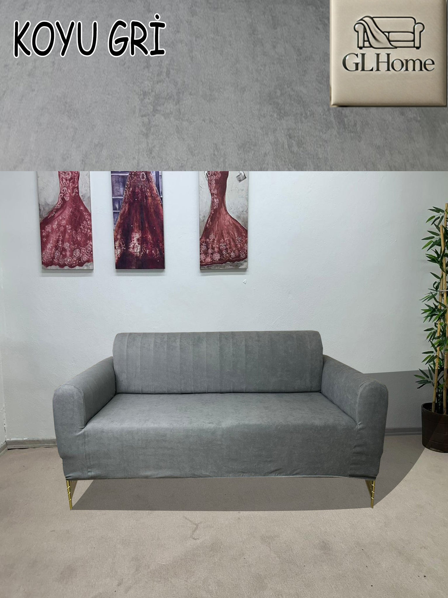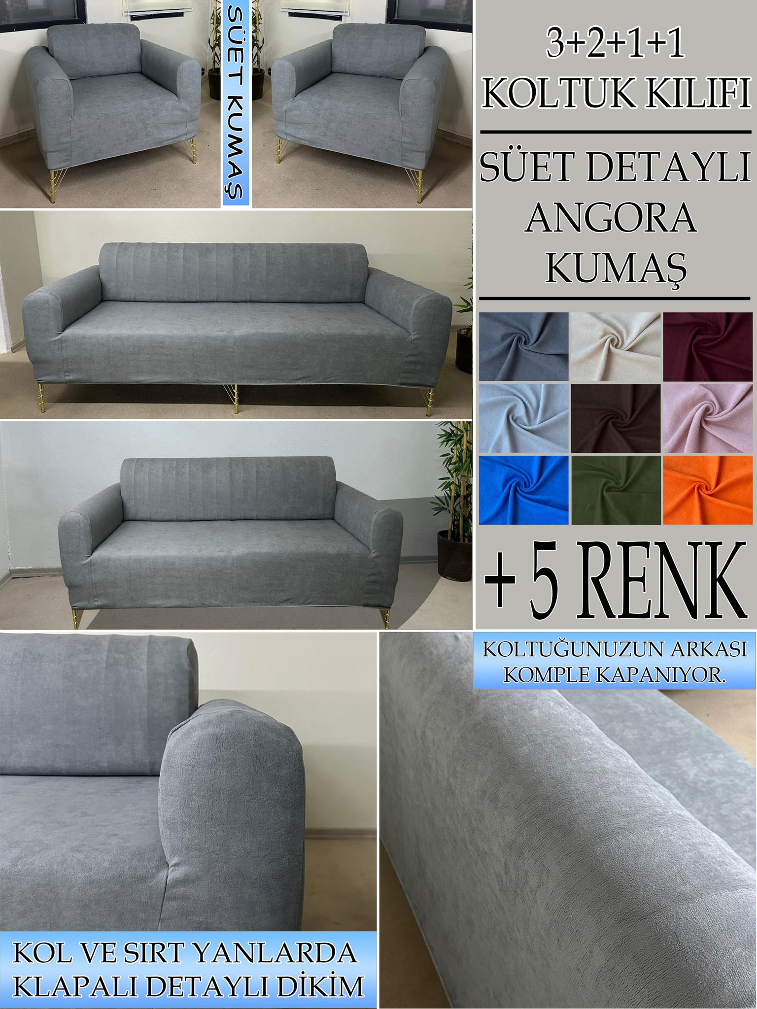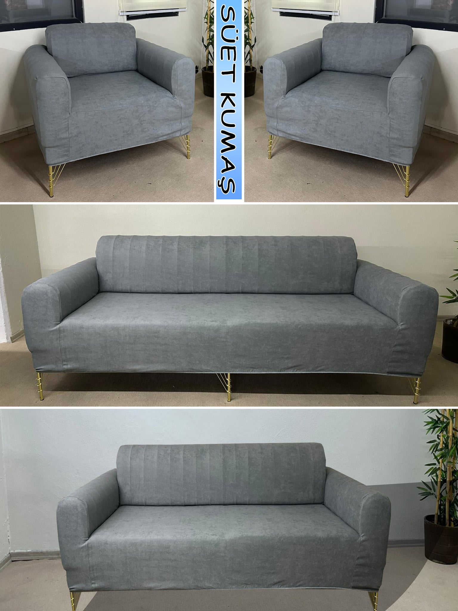 Süet Kumaş Koyu Gri 3+2+1+1 Komple Giydirme Kanepe-Çekyat, Bohem, vb. Model Koltuk Kılıfı