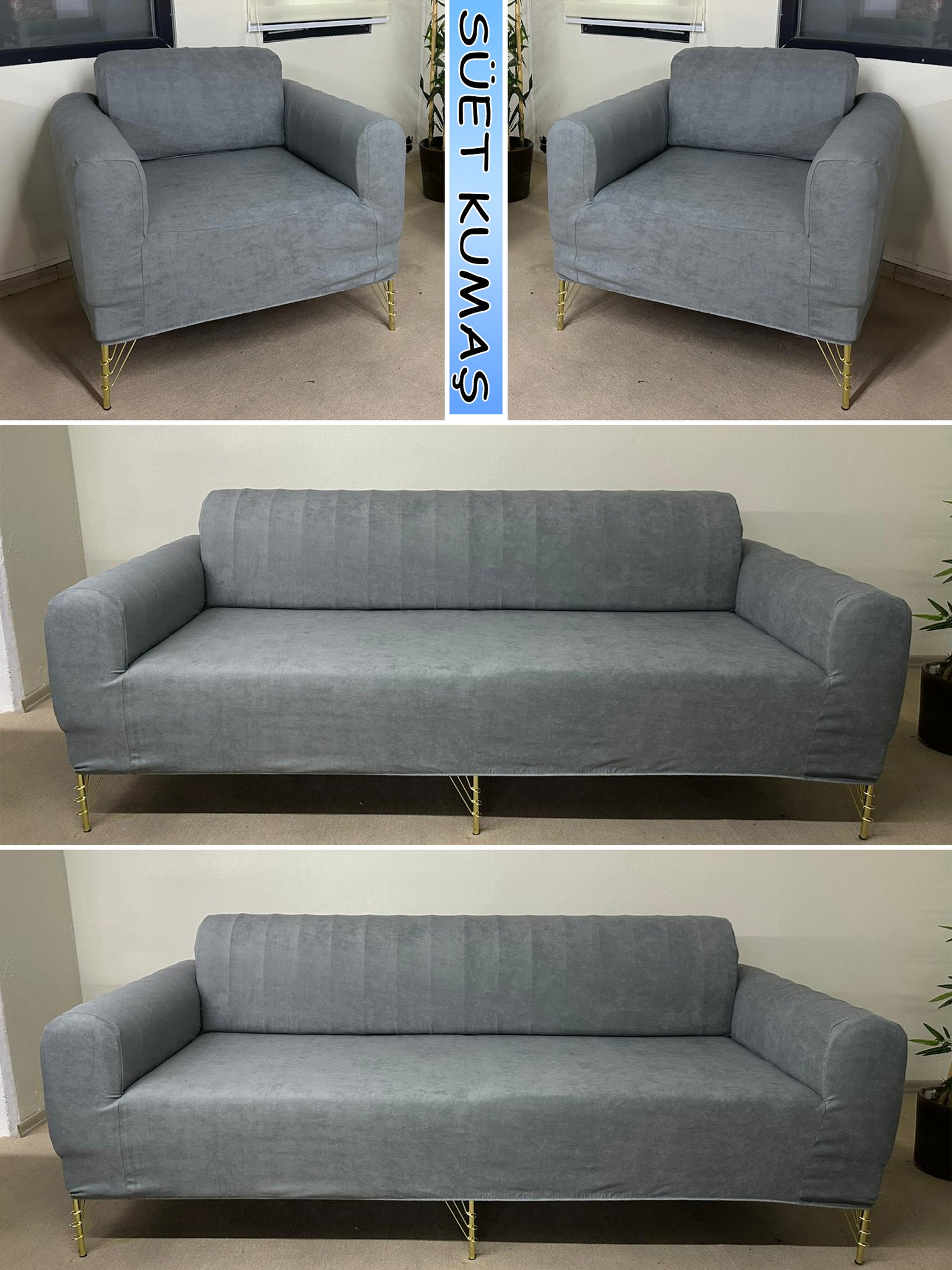 Süet Kumaş Koyu Gri 3+3+1+1 Komple Giydirme Kanepe&Çekyat, Bohem, vb. Modeller Koltuk Kılıfı