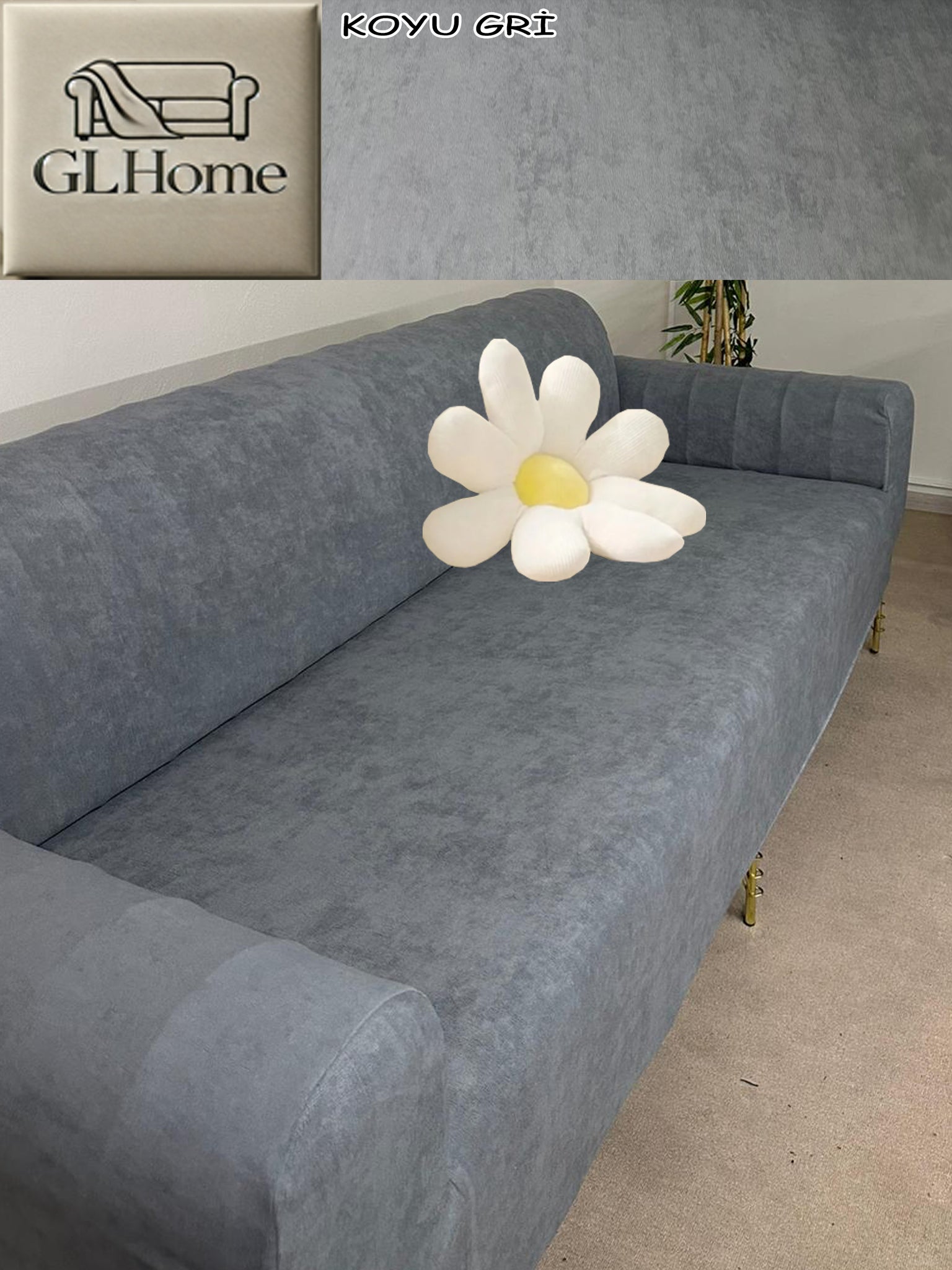 Süet Kumaş Koyu Gri 3Lü Komple Giydirme Kanepe & Çekyat, Bohem, Porto, Vb. Model Koltuk Kilifi