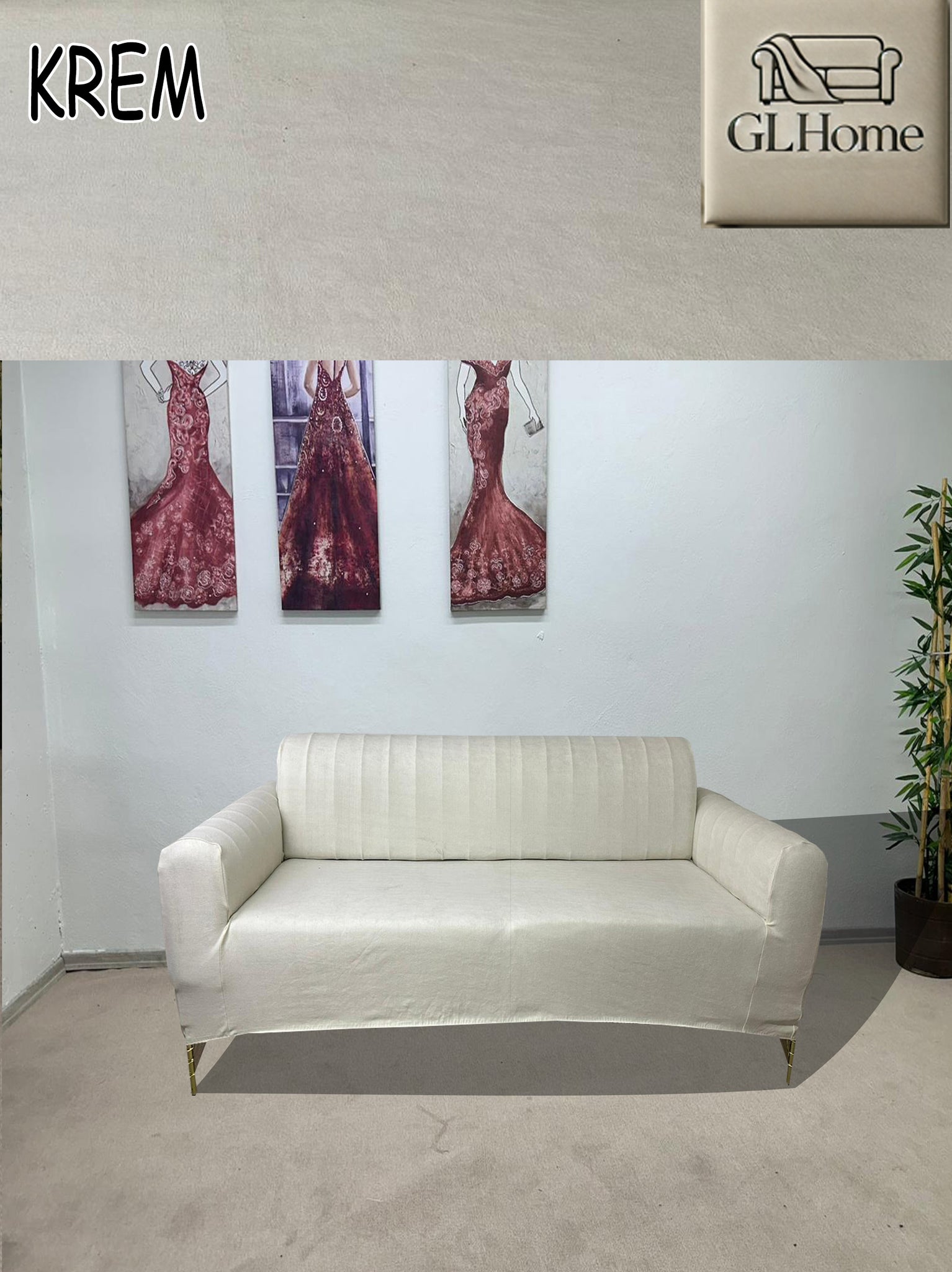 Süet Kumaş Krem Çift Kişilik Komple Giydirme 2"Li kanepe Bohem Tarzı koltuk Kılıfı
