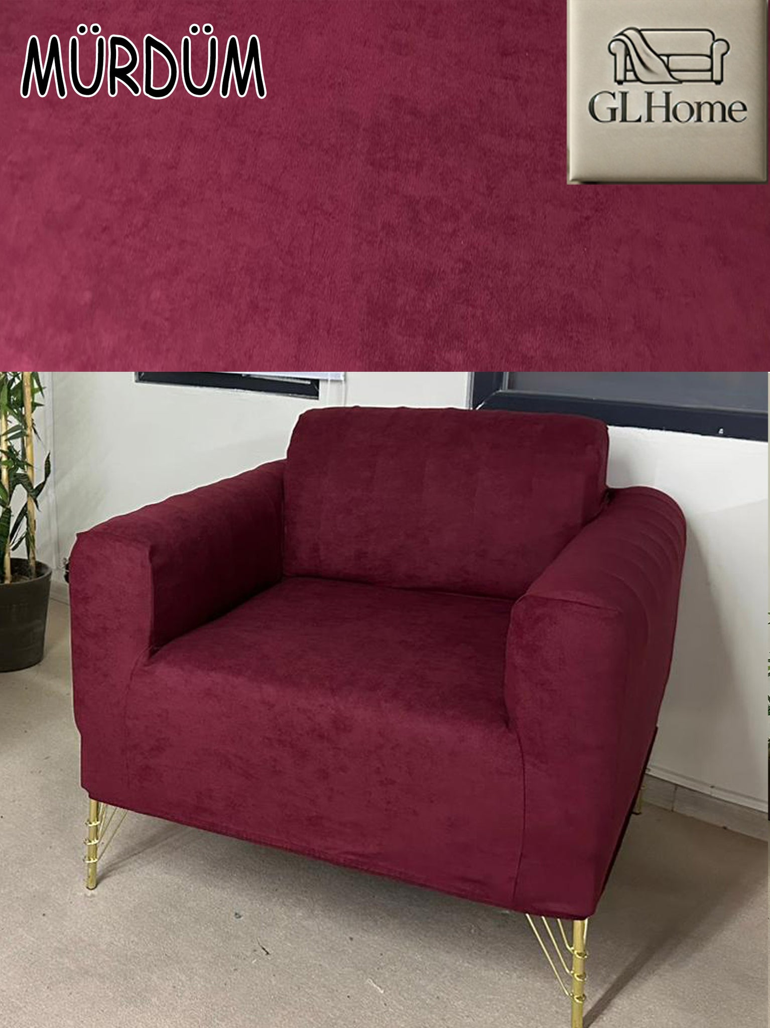 Süet Kumaş Mürdüm Tekli&Berjer Komple Giydirme, Bohem, Porto Model Koltuk Kılıfı