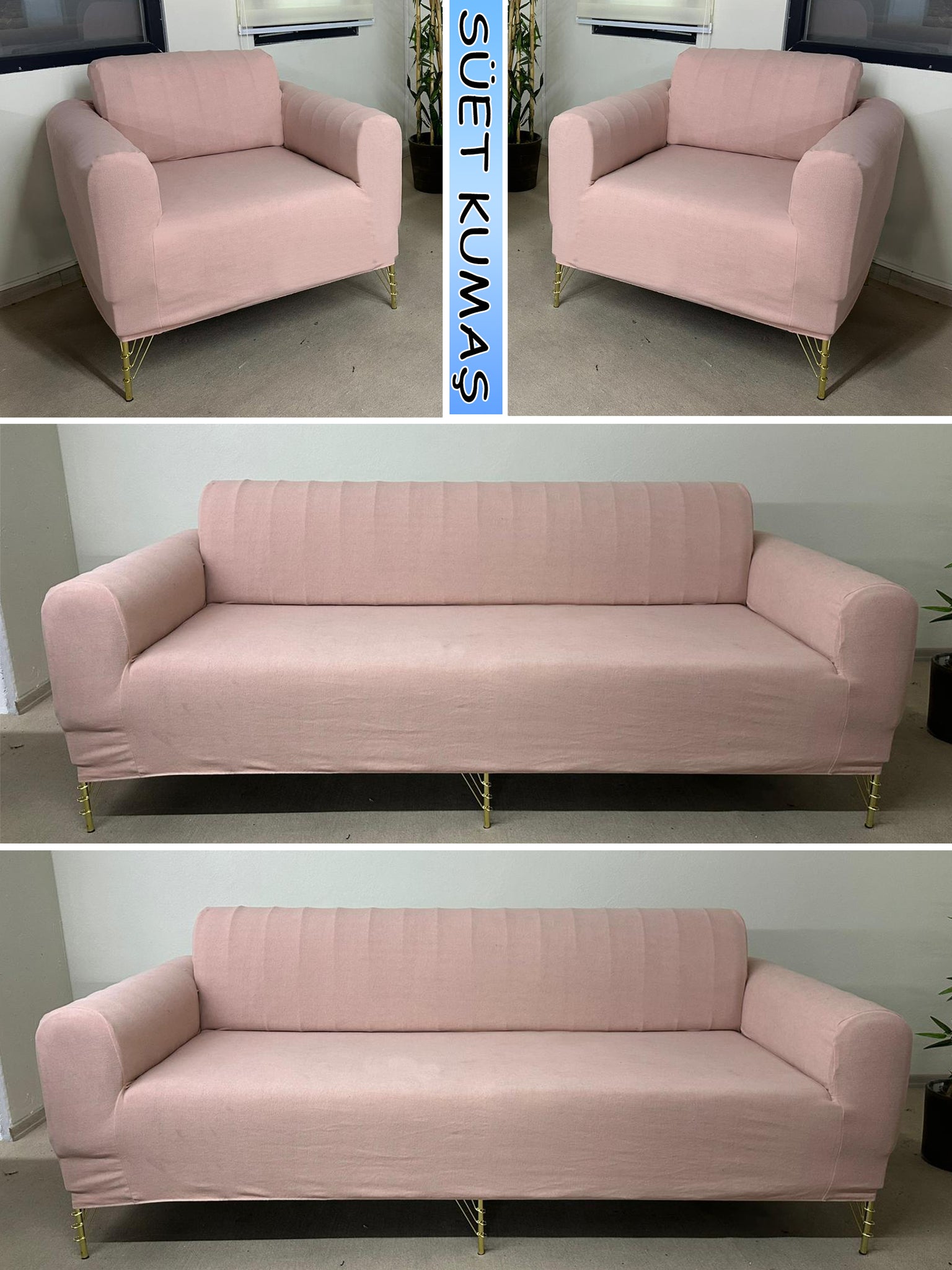 Süet Kumaş Pudra 3+3+1+1 Komple Giydirme Kanepe&Çekyat, Bohem, vb. Modeller Koltuk Kılıfı