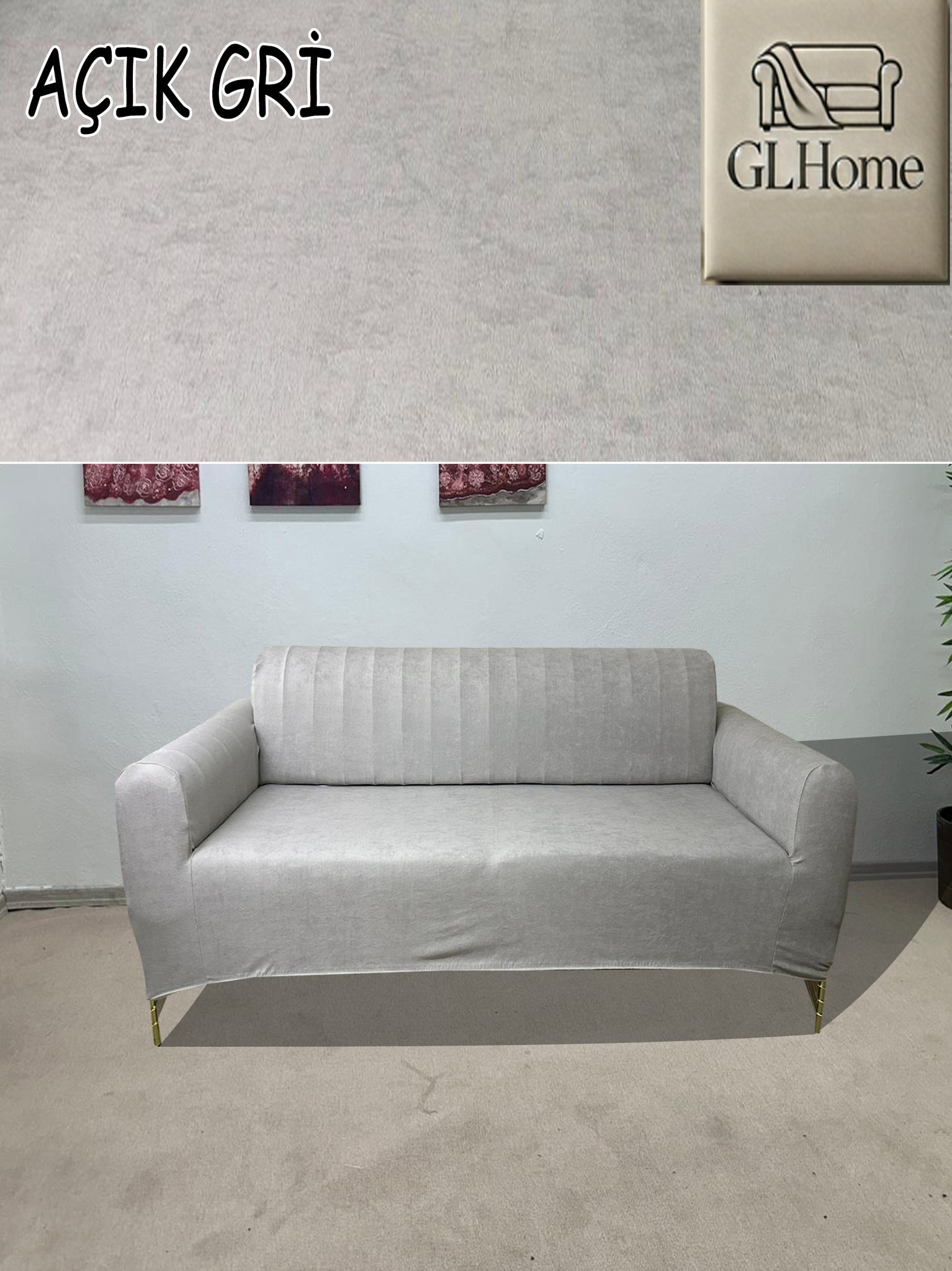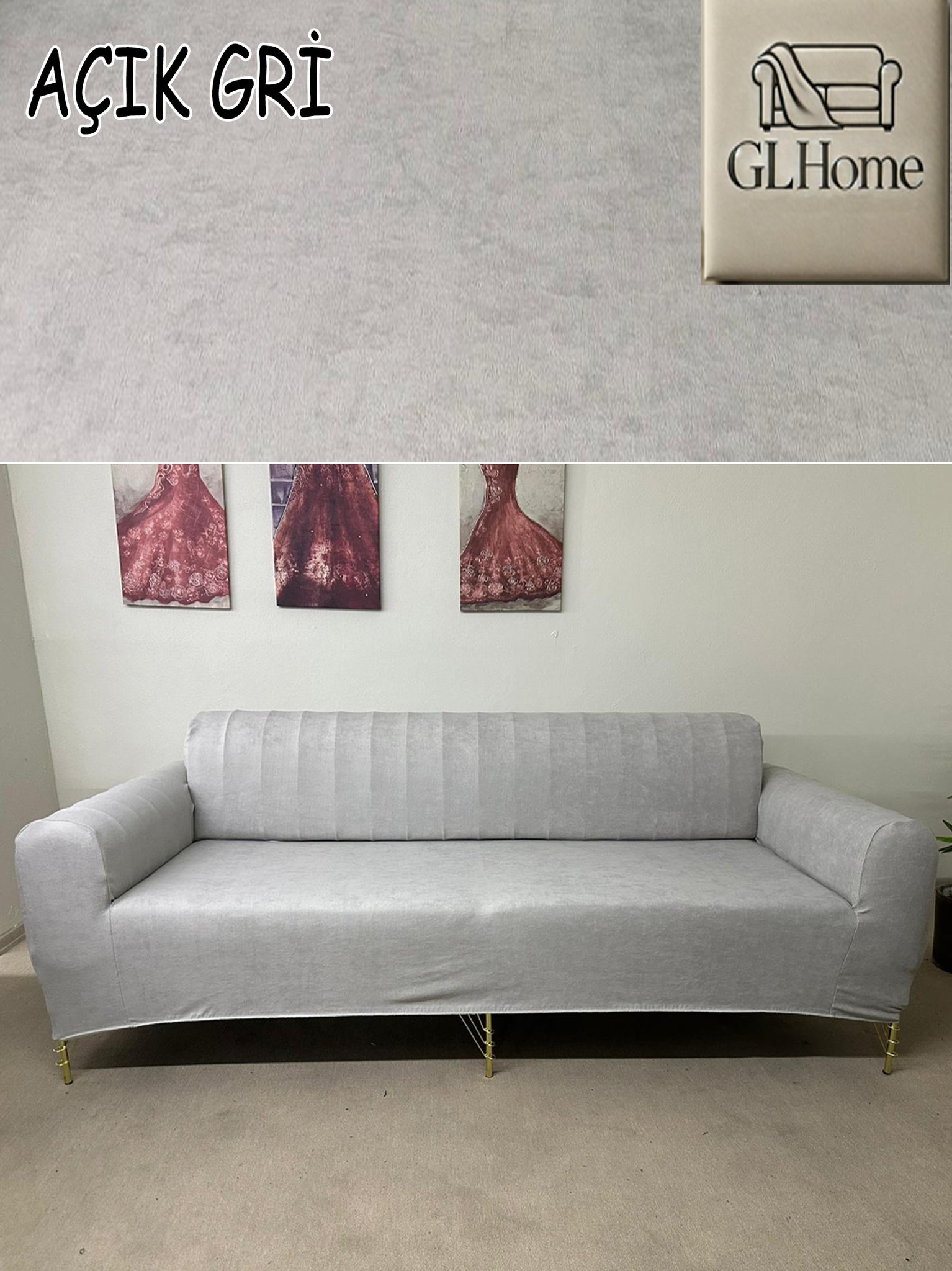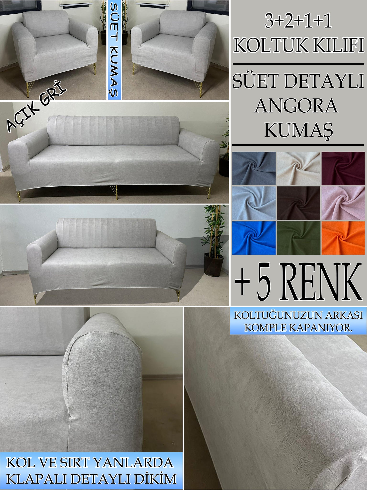 Süet Kumaş Açık Gri 3+2+1+1 Komple Giydirme Kanepe-Çekyat, Bohem, vb. Model Koltuk Kılıfı